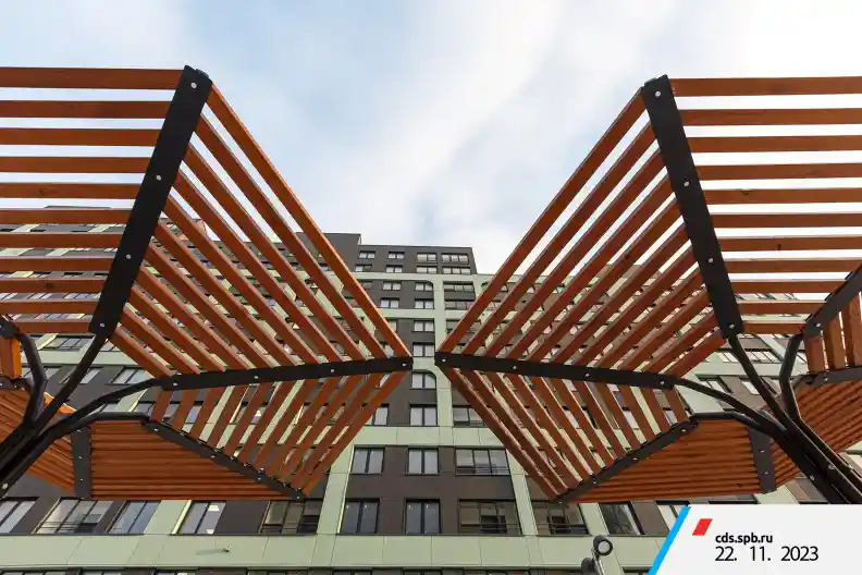 Инфраструктура комплекса продумана для комфортной жизни. На территории обустроены многоуровневые паркинги и открытые гостевые парковки; в первой очереди построен пристроенный паркинг на 263 машино‑места. Дворы закрыты от автомобилей и благоустроены: здесь размещены детские и спортивные площадки, зоны отдыха с беседками и навесами, скамейки, а также беговые и велосипедные дорожки.