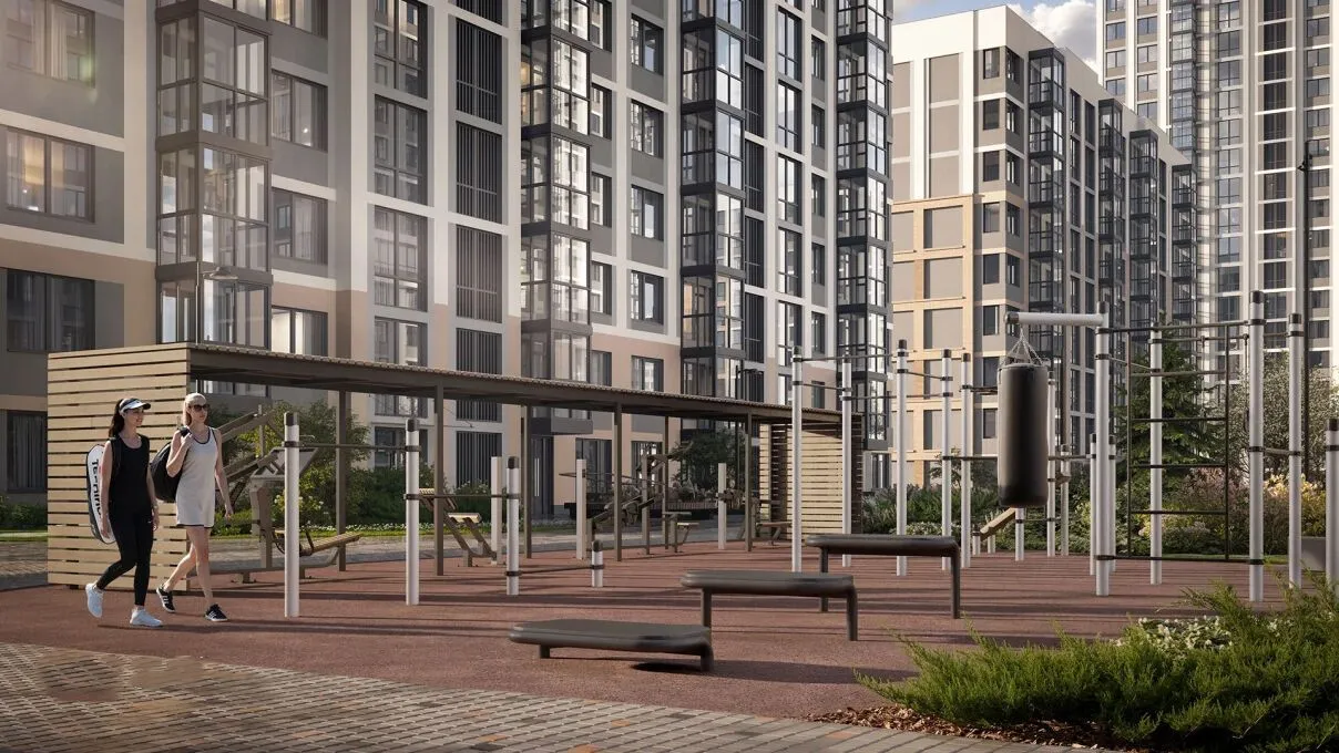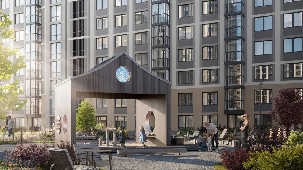 Во дворе размещены четыре детские площадки от Richter RUS, включая оборудование с музыкальными элементами, зелёные кабинеты, уличный коворкинг и сцена для выступлений. Территория охраняется круглосуточно, доступ осуществляется только по индивидуальному цифровому ключу.