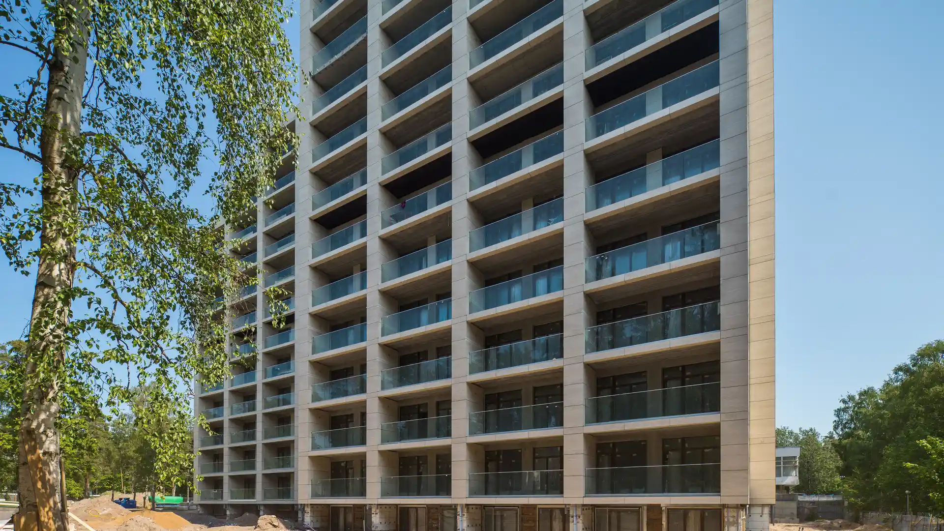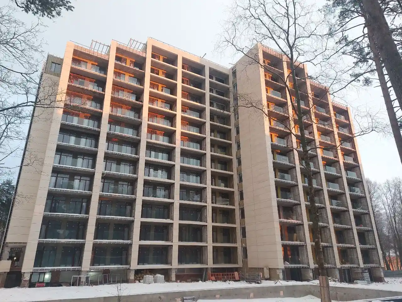 Отделка апартаментов зависит от этажа: на 1–7‑м уровнях предлагается чистовая отделка, на 8–10‑м — white box, а на 11–12‑м этажах — черновая. Во всех помещениях установлены энергоэффективные окна, способные отражать до 80 % тепловой энергии.