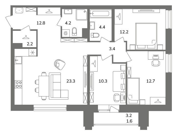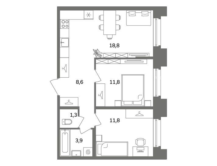 40.6 - 87.1 м²