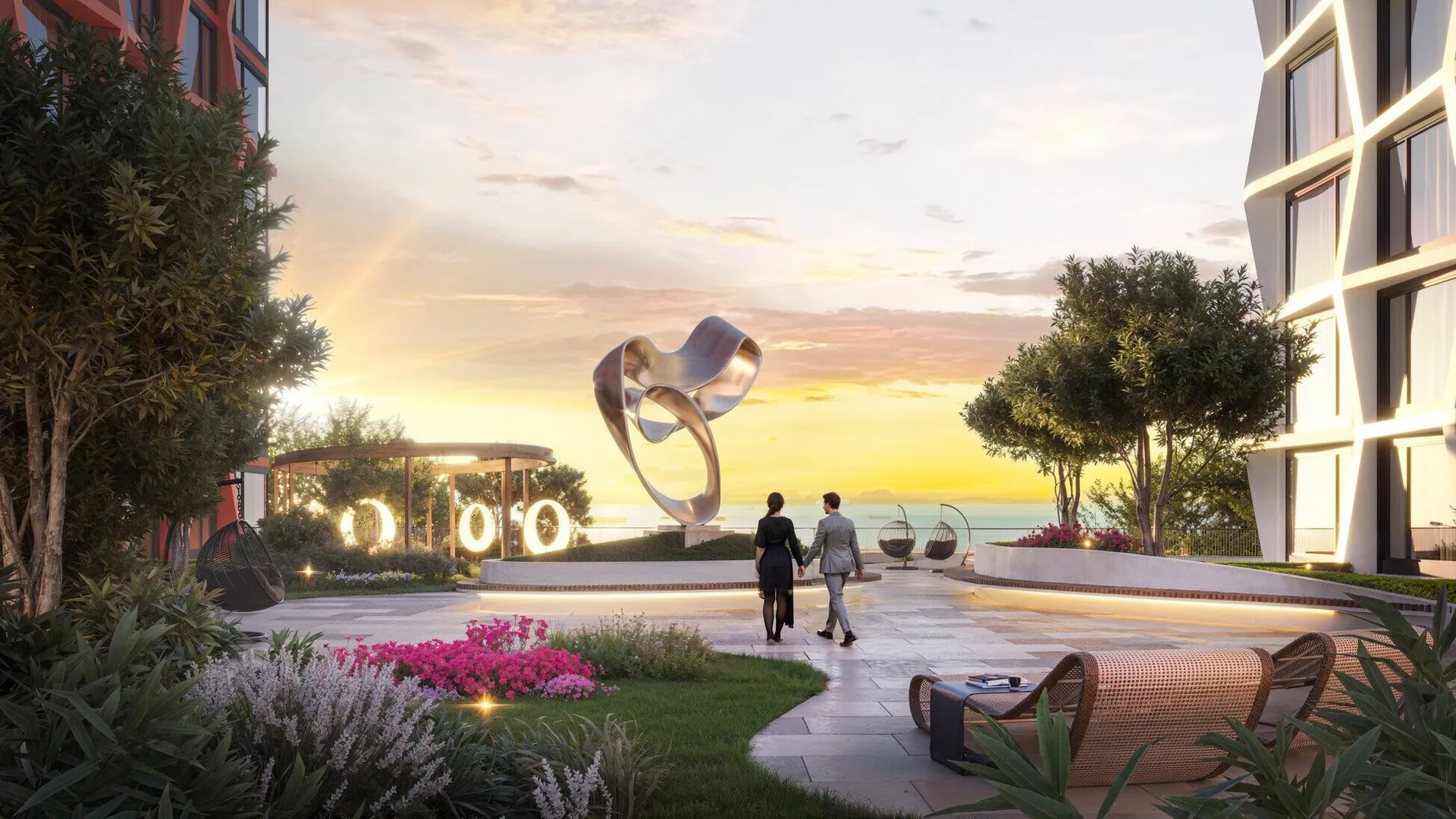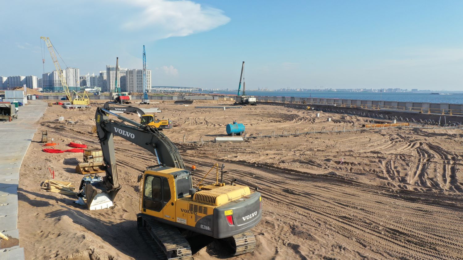 На территории комплекса будет создан ландшафтный парк площадью 2600 м² с детскими и спортивными площадками, местами для отдыха. Со стороны залива появится событийная площадь между башнями Карбон и Медь, на кровле стилобата — зеленые сады, интерактивные площадки, зона для занятий спортом, амфитеатр, видовые патио.