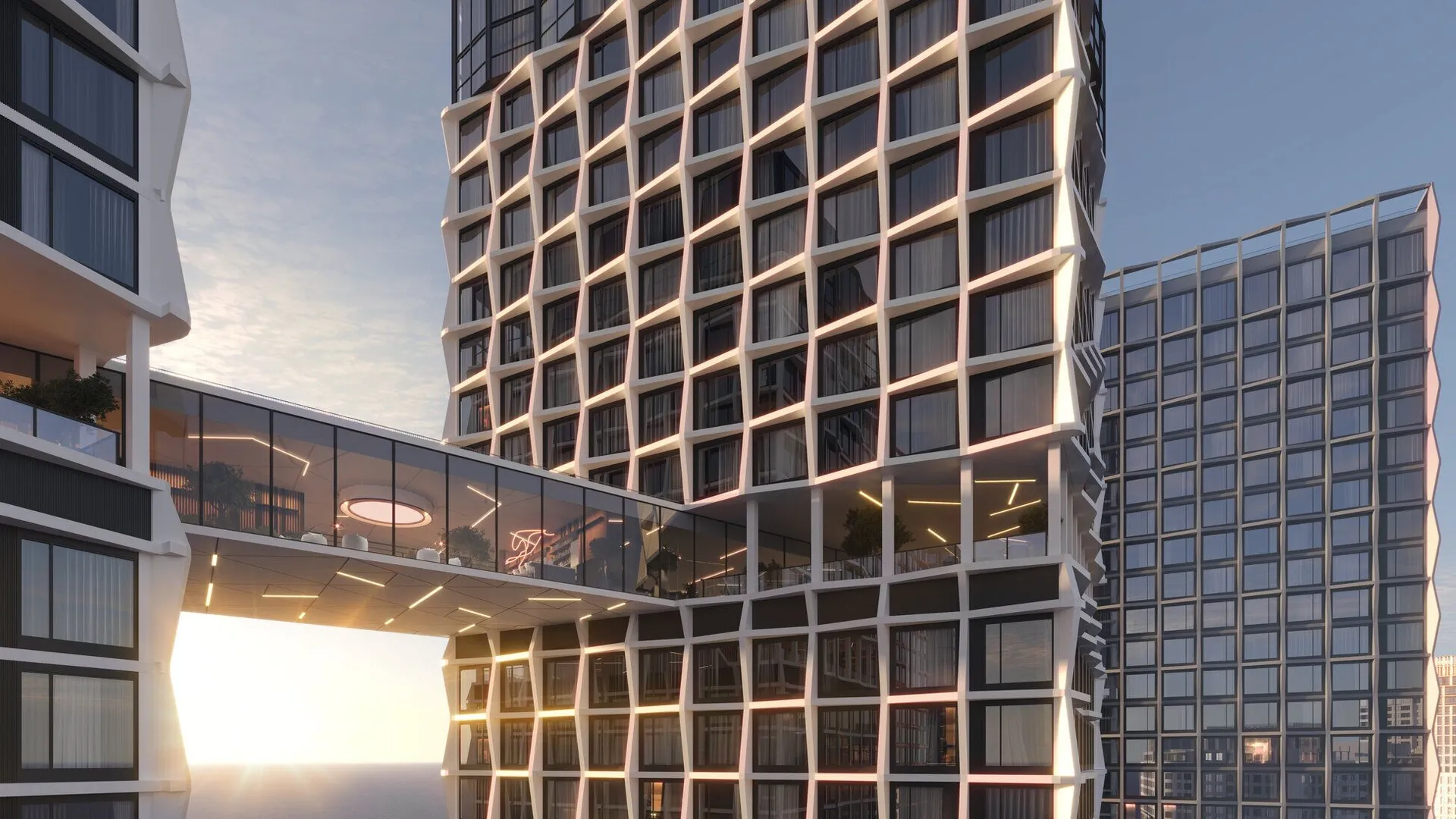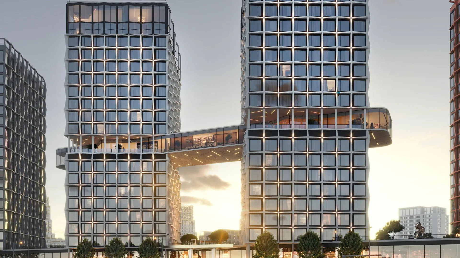 Комплекс состоит из пяти разноэтажных монолитных башен: Карбон (22 этажа), Медь (20 этажей), Титан и Вольфрам (по 19 этажей), Платина (18 этажей). Две башни (Титан и Платина) соединены «небесным мостом» на уровне девятого этажа — это первый подобный объект в Санкт-Петербурге. В мосту разместят клубную инфраструктуру площадью 1000 м²: библиотеку с террасой, коворкинг, кинозал с караоке, залы для йоги и персональных тренировок, комнату для медитаций, детскую комнату, переговорные и другие пространства.