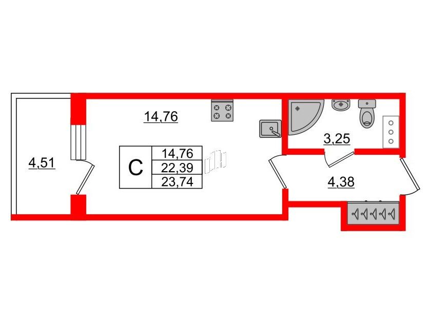 23.32 - 95.75 м²