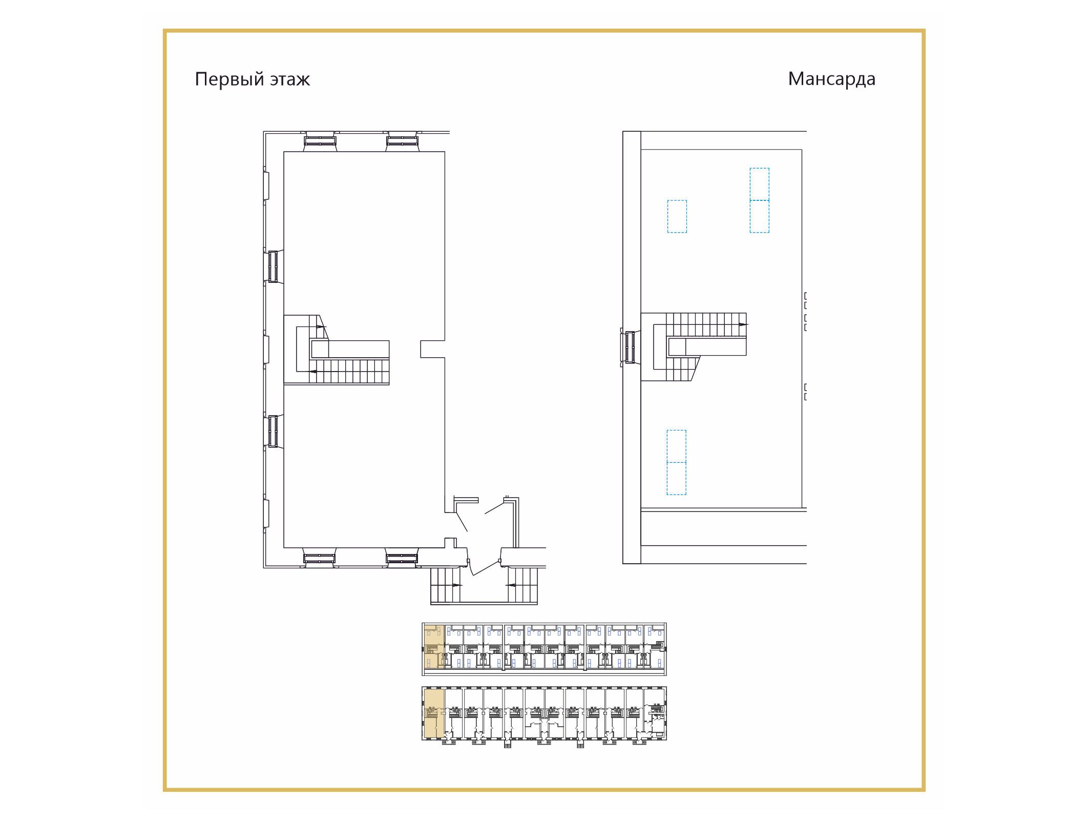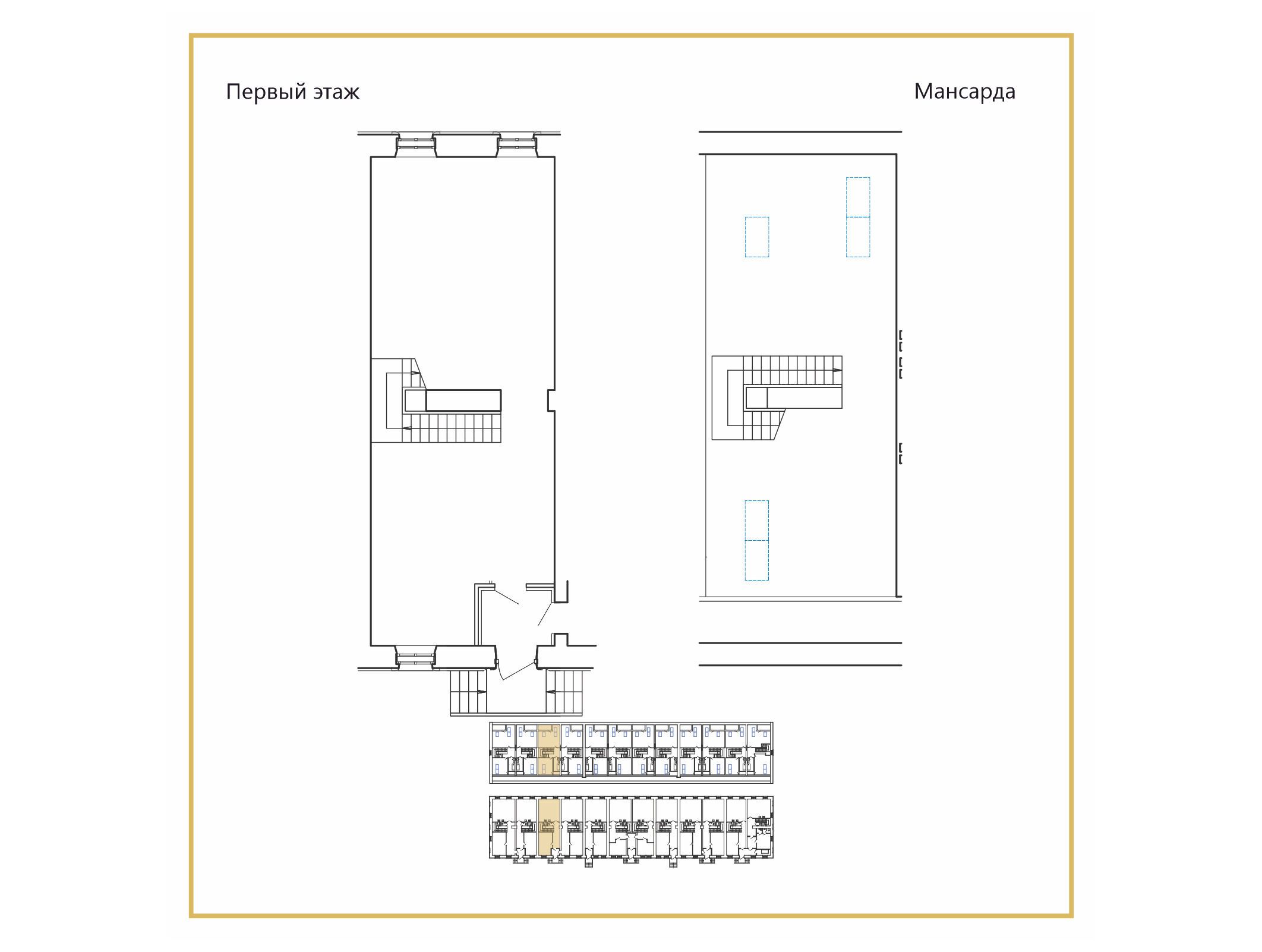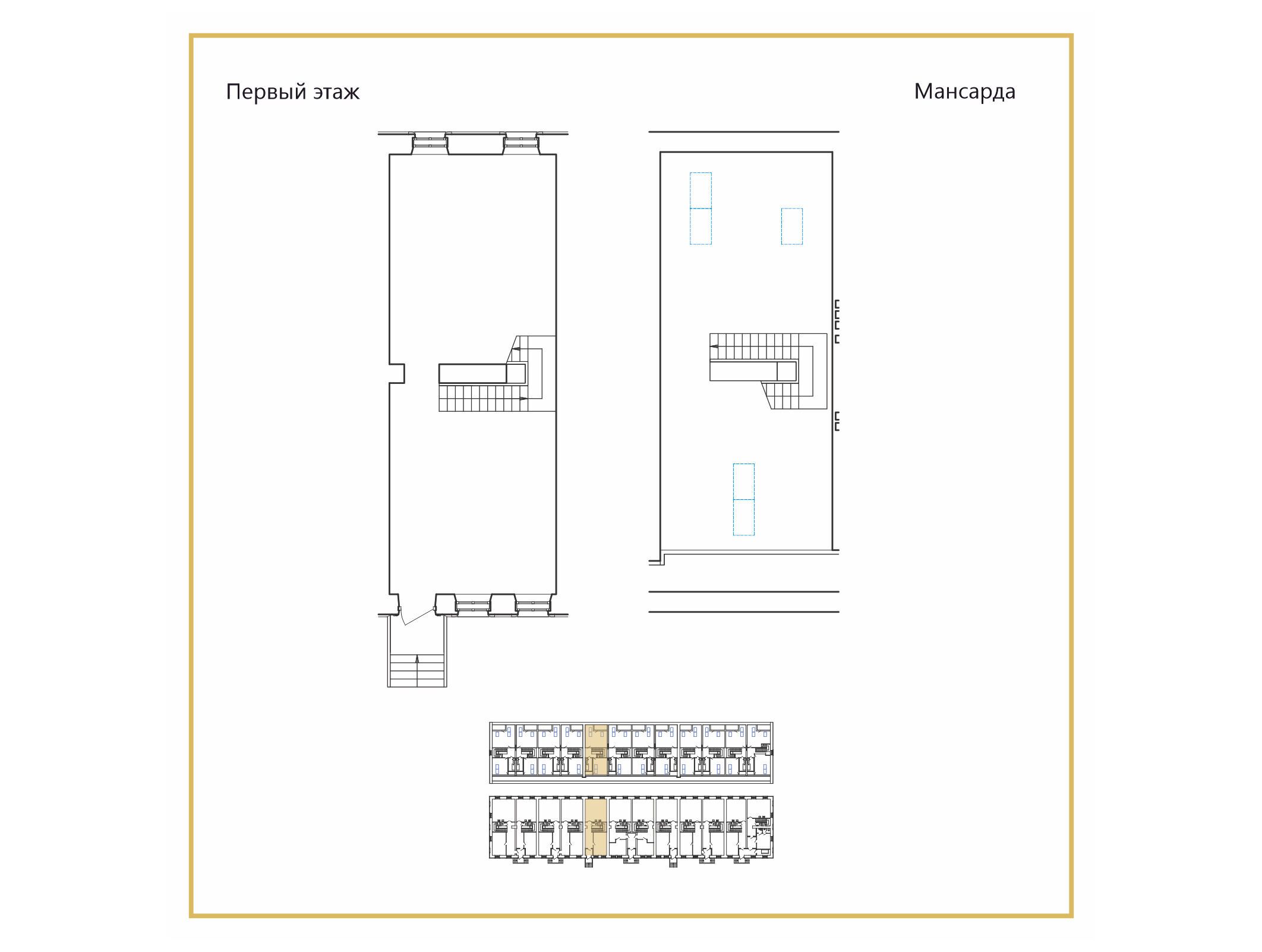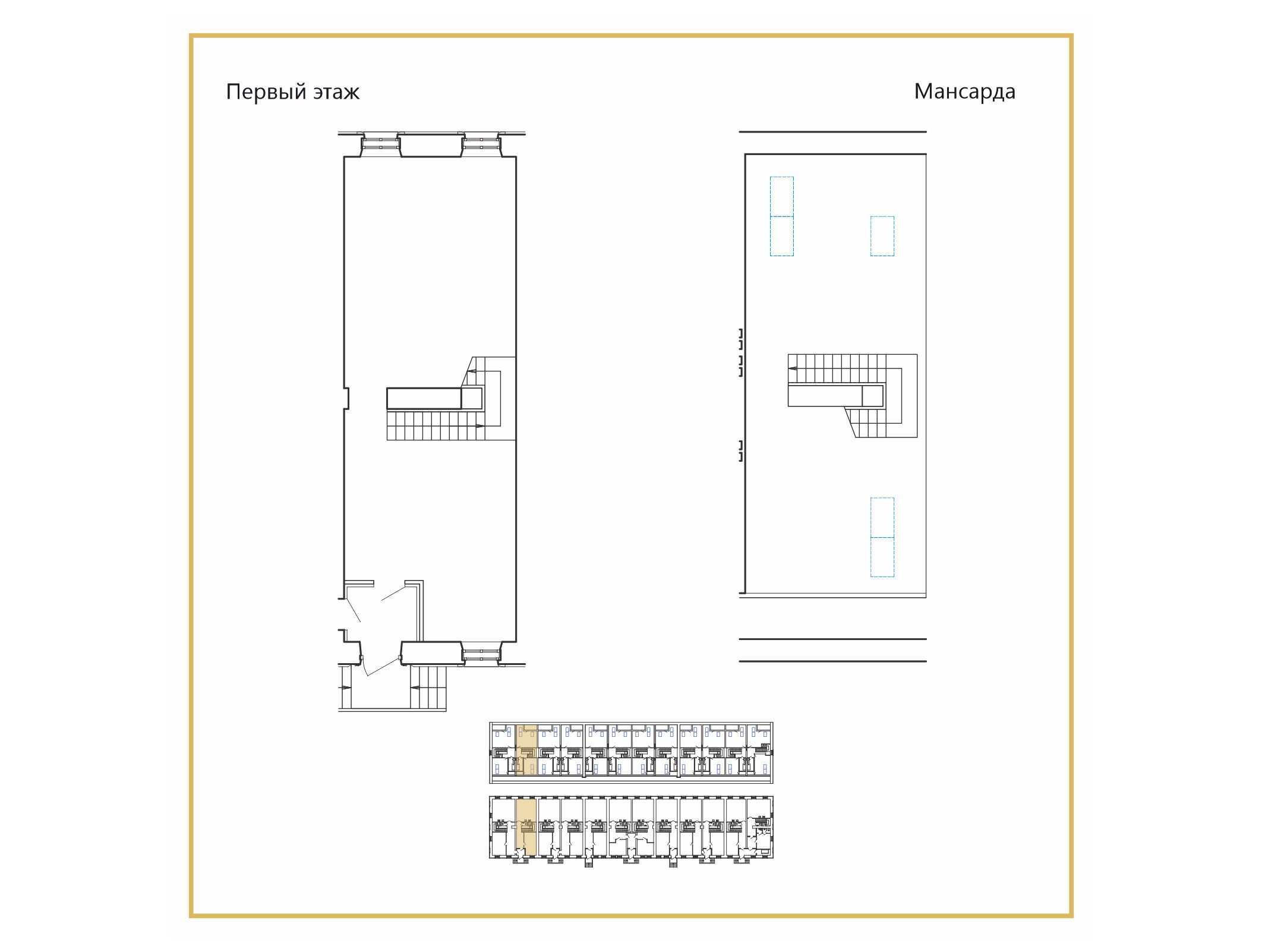 В доме всего 12 апартаментов площадью от 150 до 190 м. Все лоты двухэтажные, с мансардными окнами и высотой потолков более 3 метров (в отдельных лотах — 3,4 м). Каждый апартамент имеет отдельный вход с улицы, небольшой передний двор и персональную парковочную площадку, вымощенную плиткой. В ряде апартаментов предусмотрены окна на три стороны света, что обеспечивает повышенную освещённость помещений.
