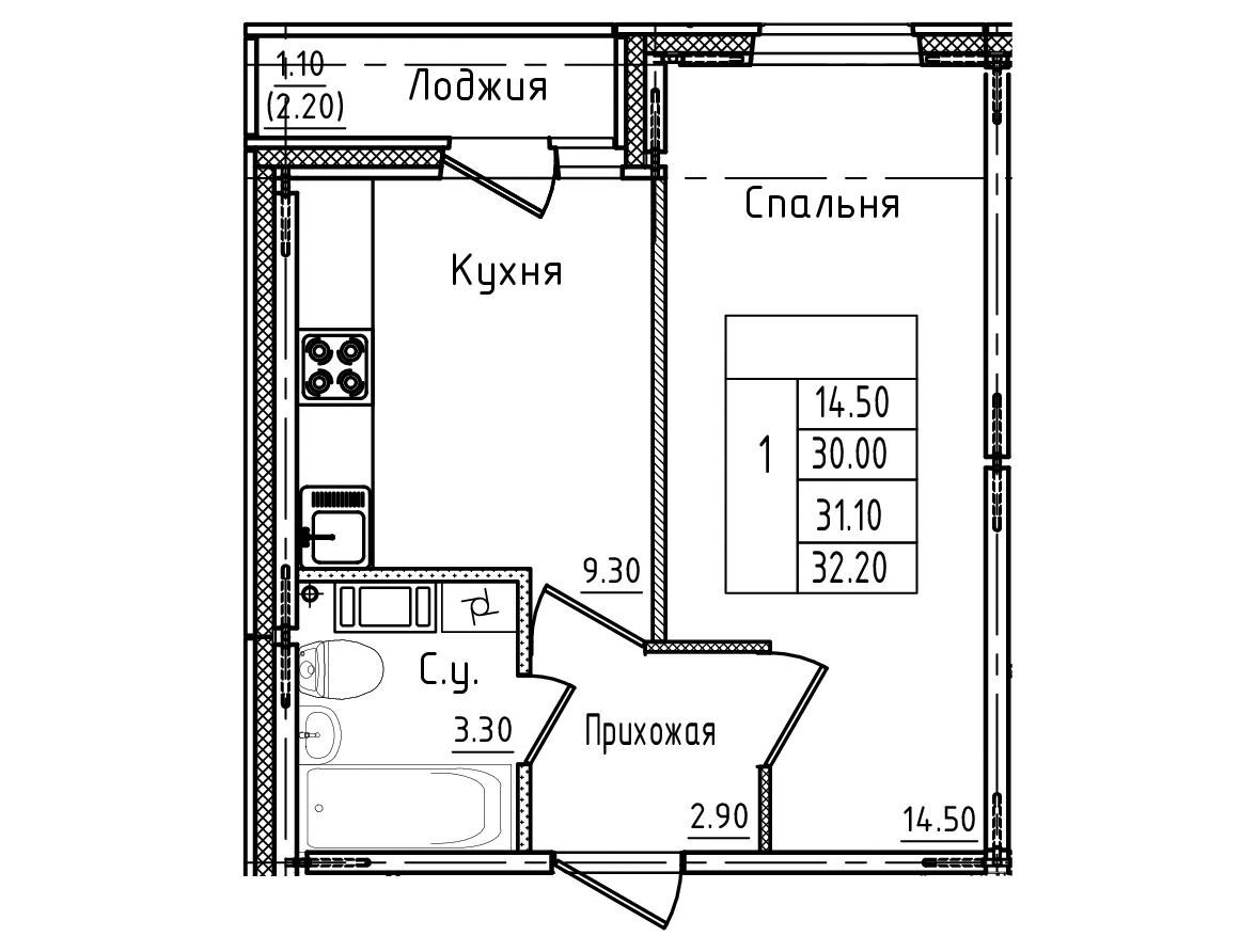 31 - 36.6 м²