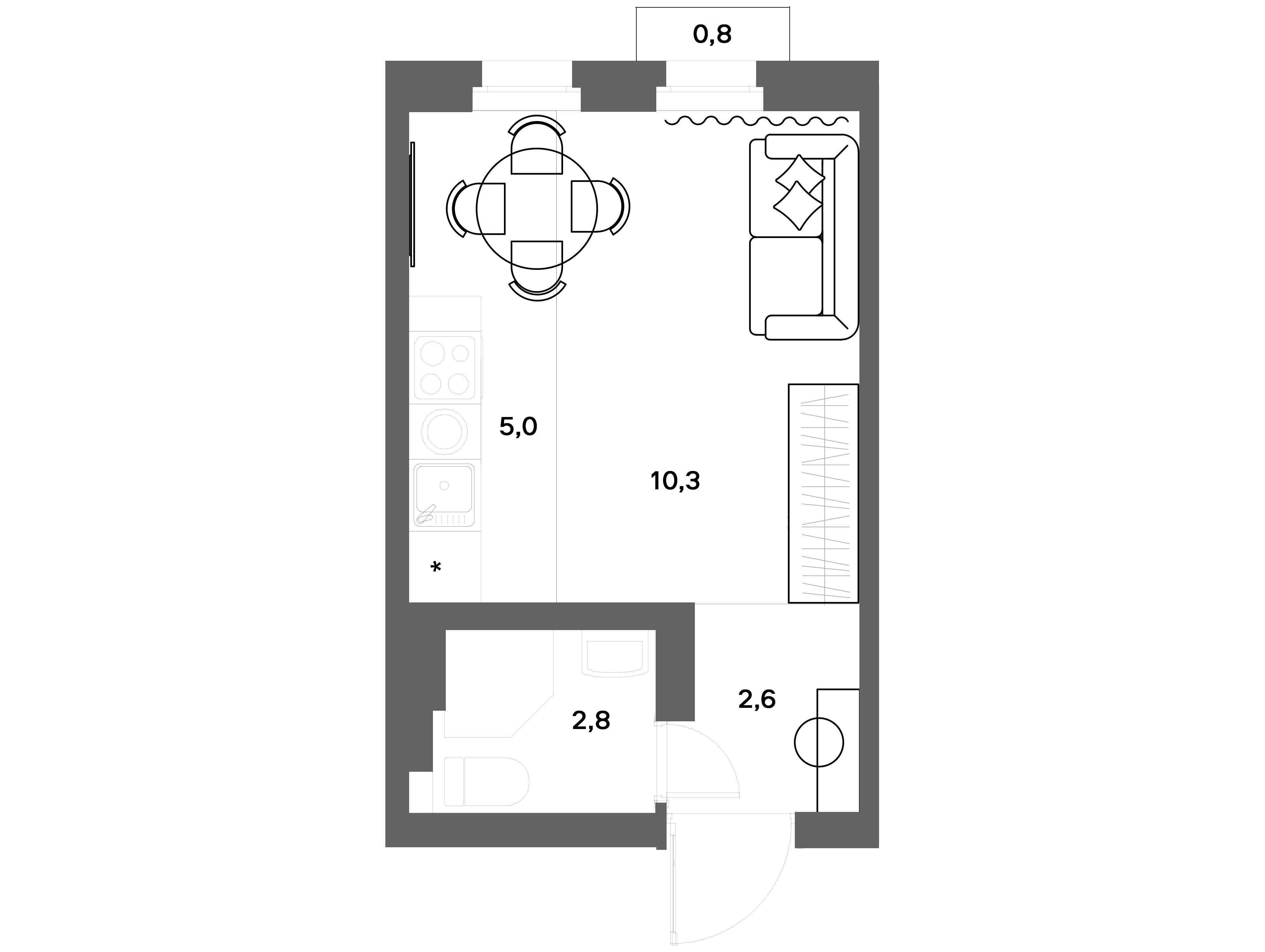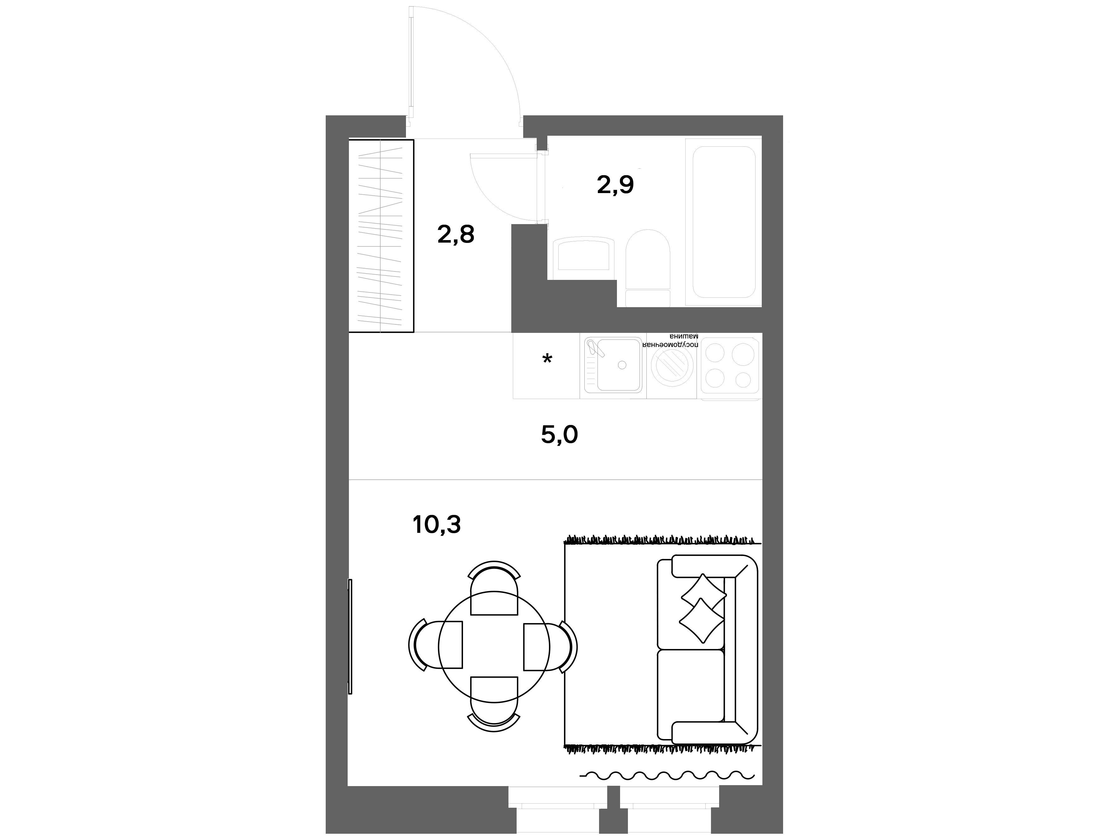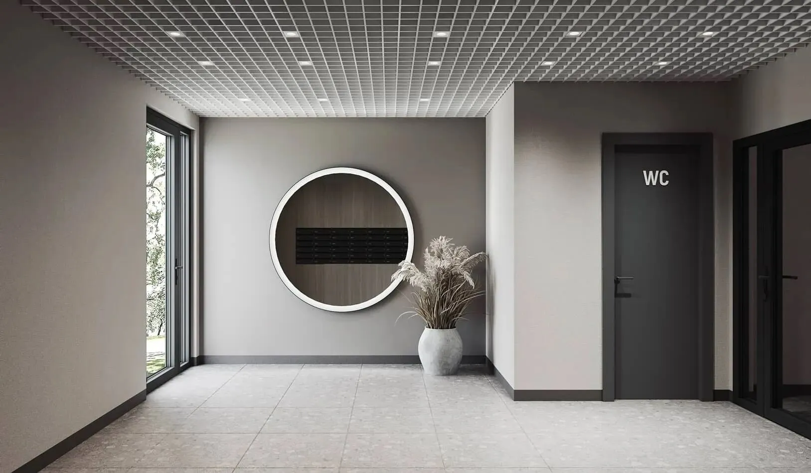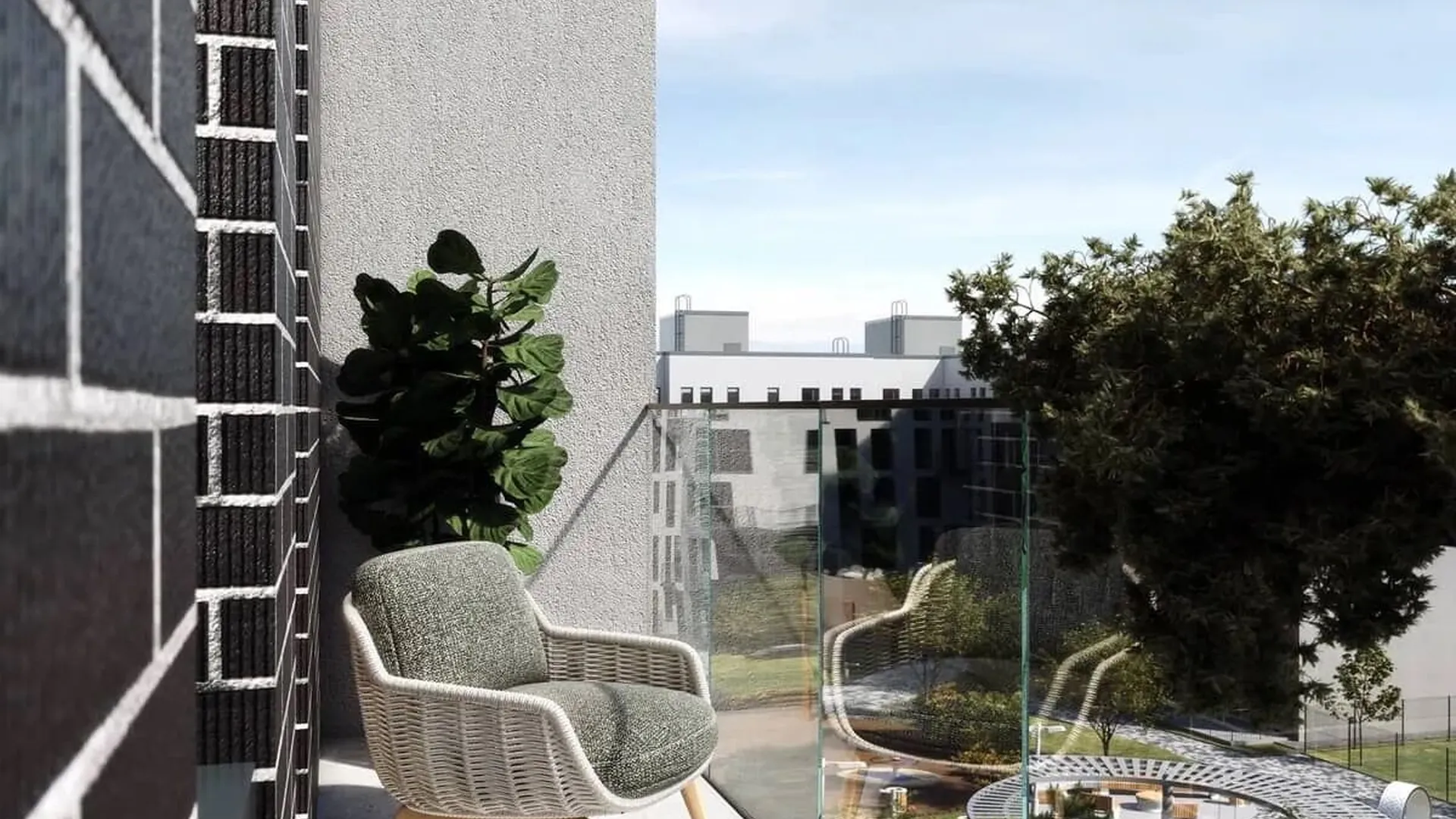 В комплексе представлены студии, одно‑ и двухкомнатные квартиры, в том числе евроформаты с кухнями‑гостиными, гардеробными и террасами. Площадь лотов варьируется от 26 до 54 м², высота потолков составляет 2,74 м. Все квартиры передаются с чистовой отделкой Фрэш в светлых тонах: уложен ламинат 32‑го класса, керамогранит, наклеены обои под покраску, смонтированы натяжные потолки. Установлены межкомнатные и входные двери, сантехника, а также тумбы с раковинами.