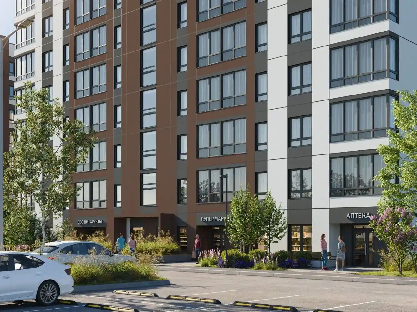 На территории комплекса предусмотрены: