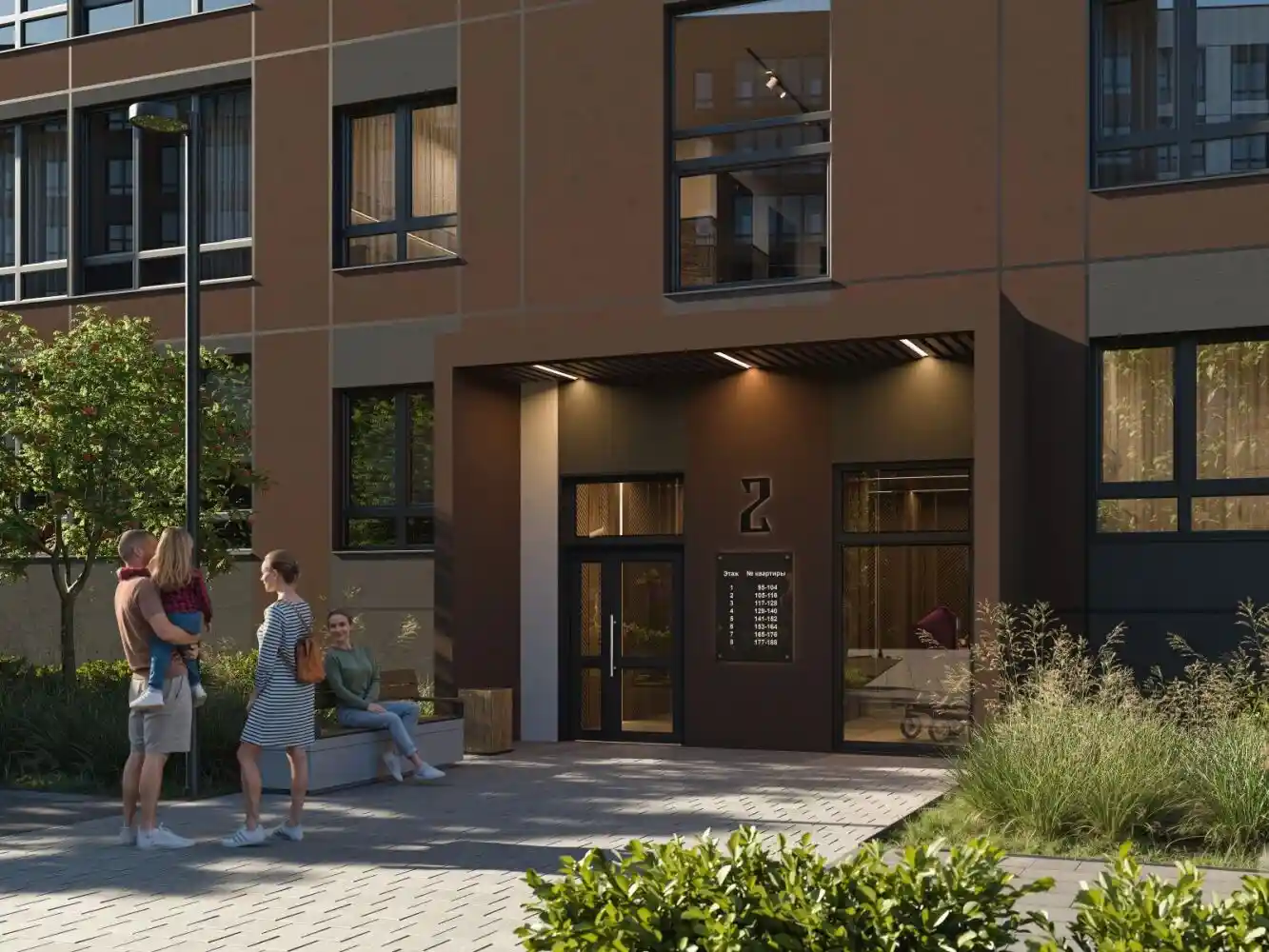 Комплекс охраняется, установлено видеонаблюдение. В входных группах предусмотрены помещения для хранения колясок, велосипедов и самокатов.