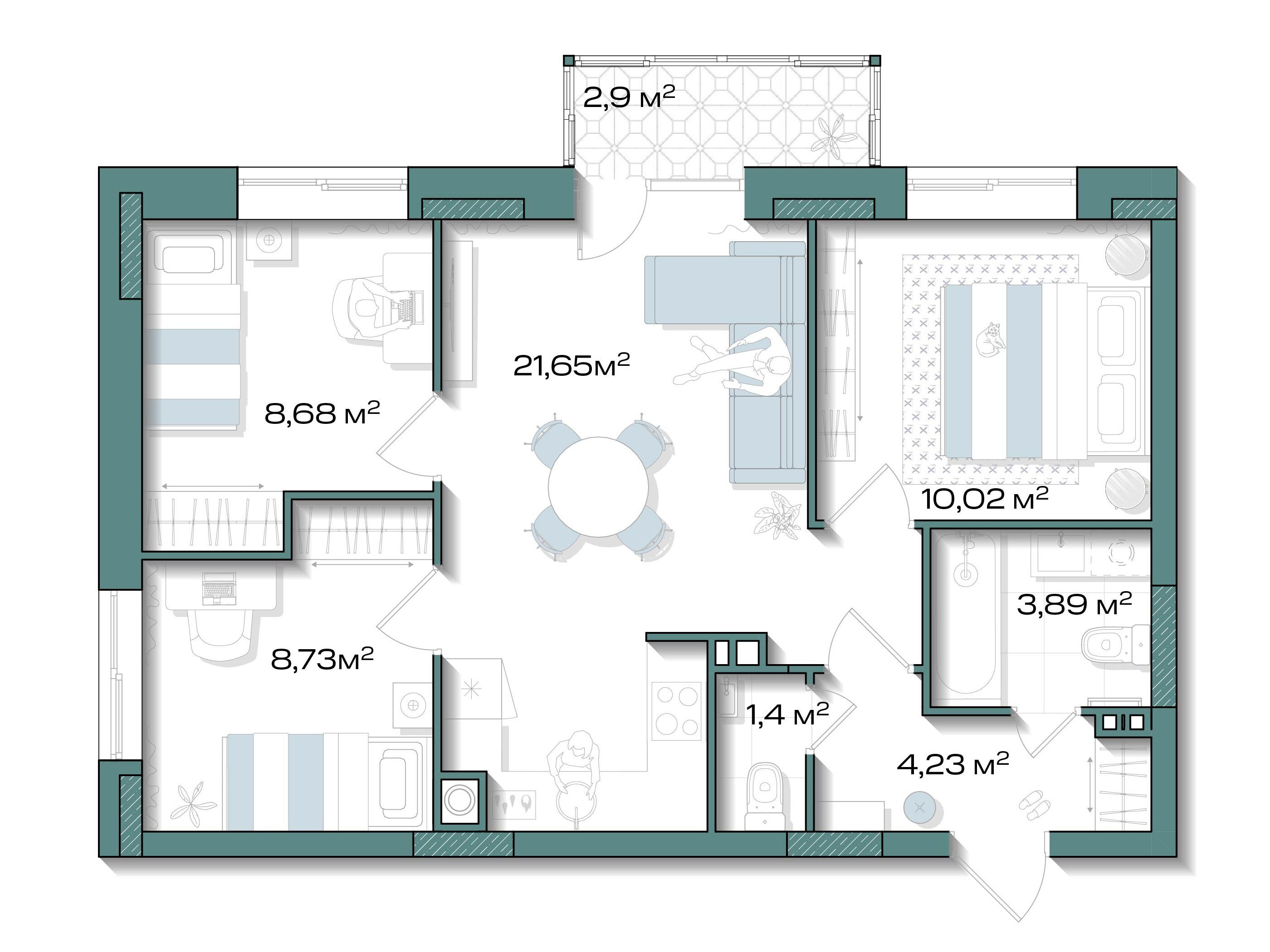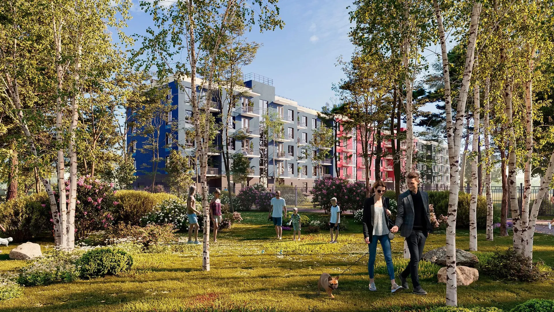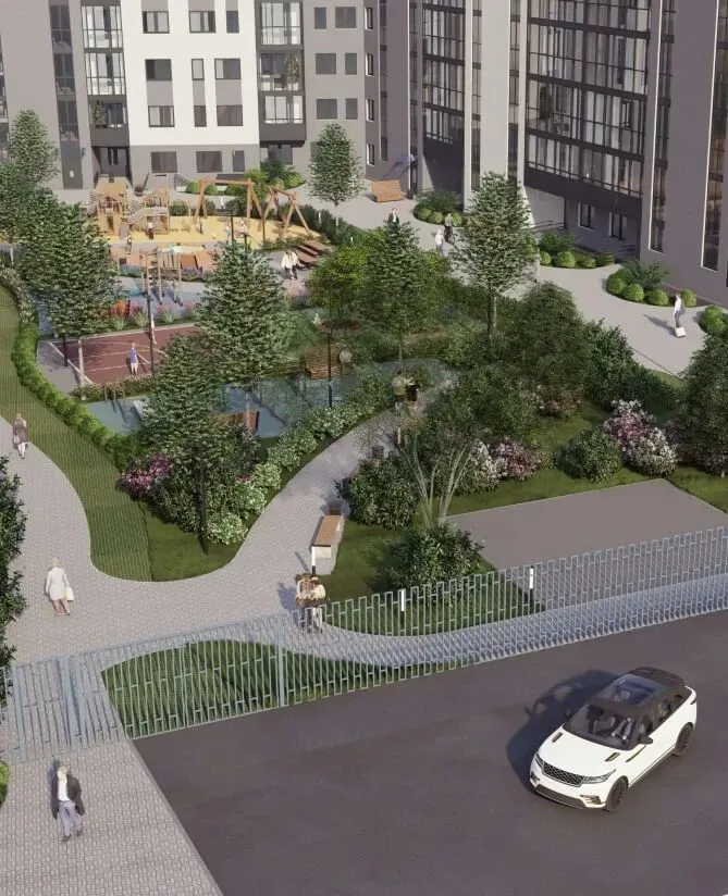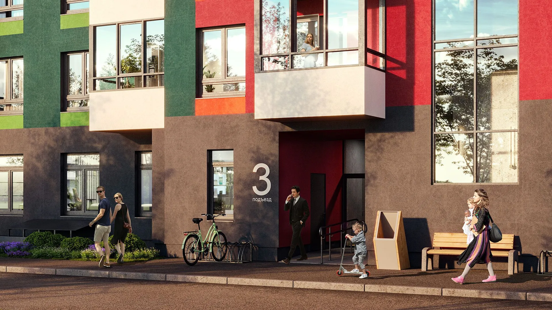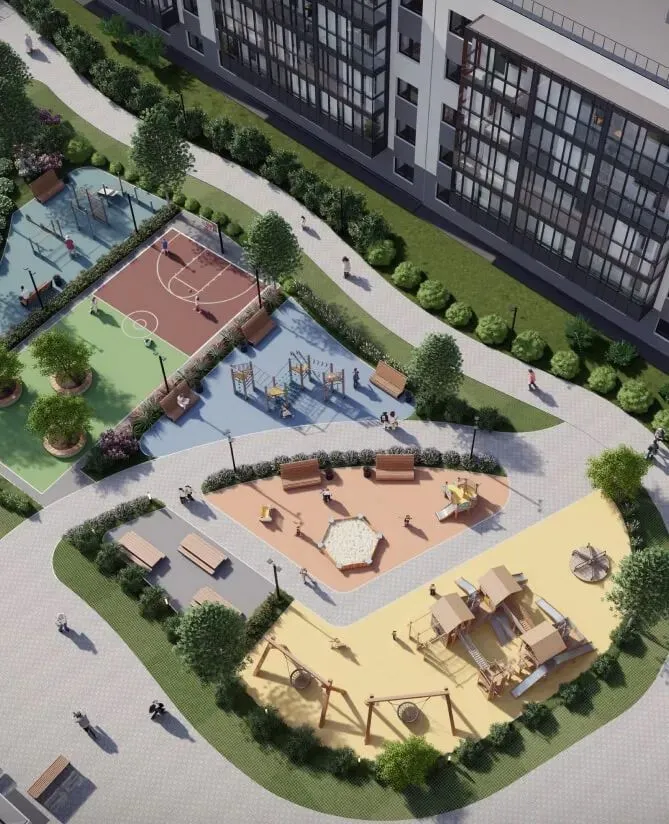 Внутренняя инфраструктура создана для комфортного проживания. Во дворе размещены современные детские площадки, открытая велопарковка, зона воркаута и пространство для отдыха с лежаками и качелями. В парадных оборудованы отдельные комнаты для хранения велосипедов и колясок.