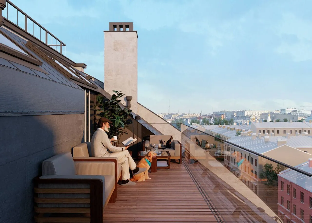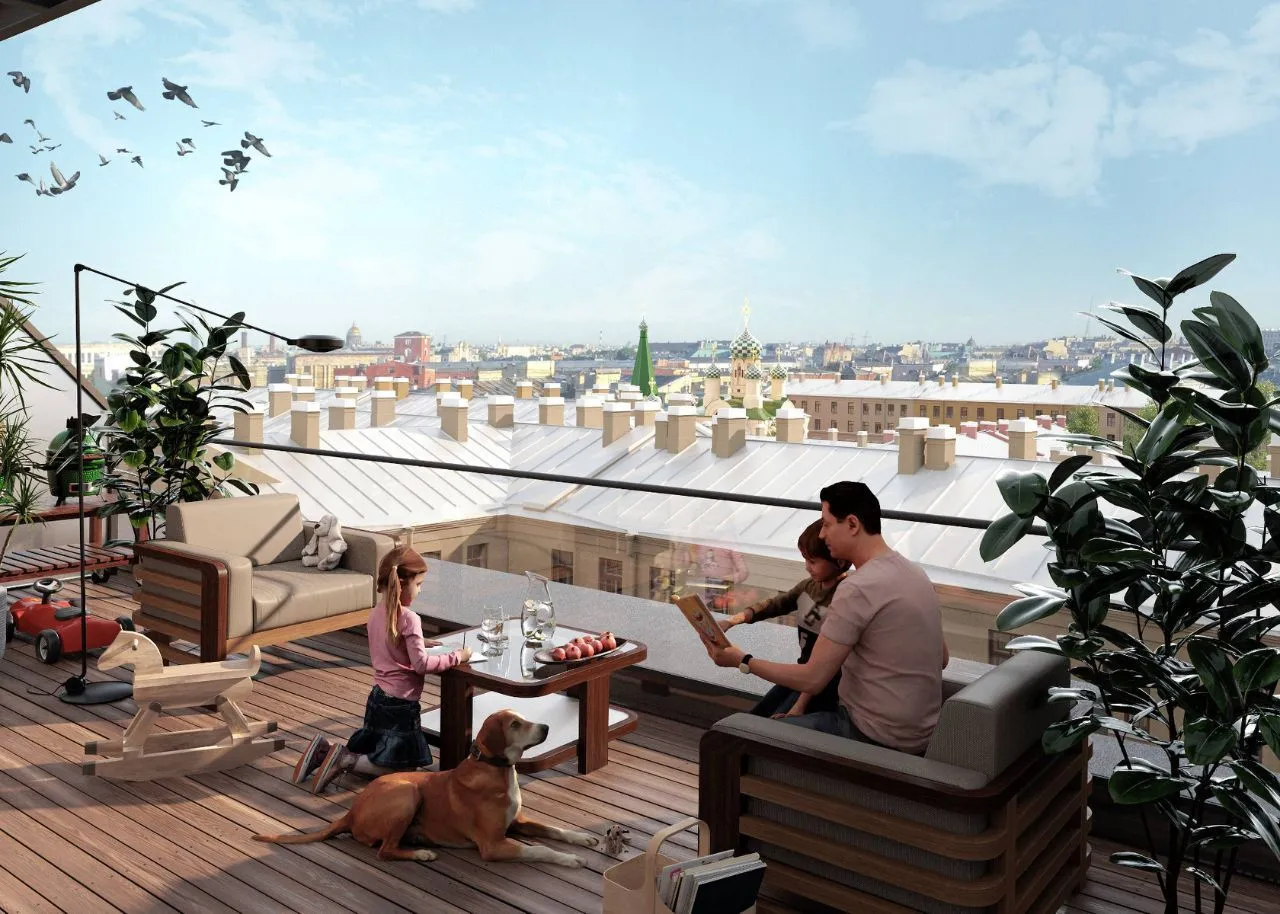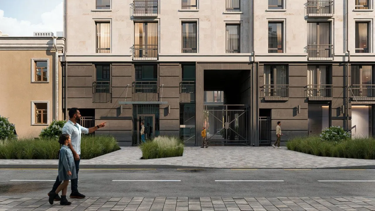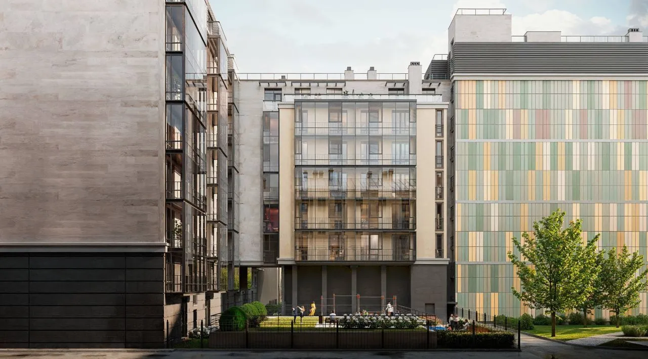 Двор выполнен в формате приватного городского сада: здесь появятся зелёные зоны, места для отдыха и детская игровая площадка. Территория закрыта, что гарантирует приватность и безопасность.