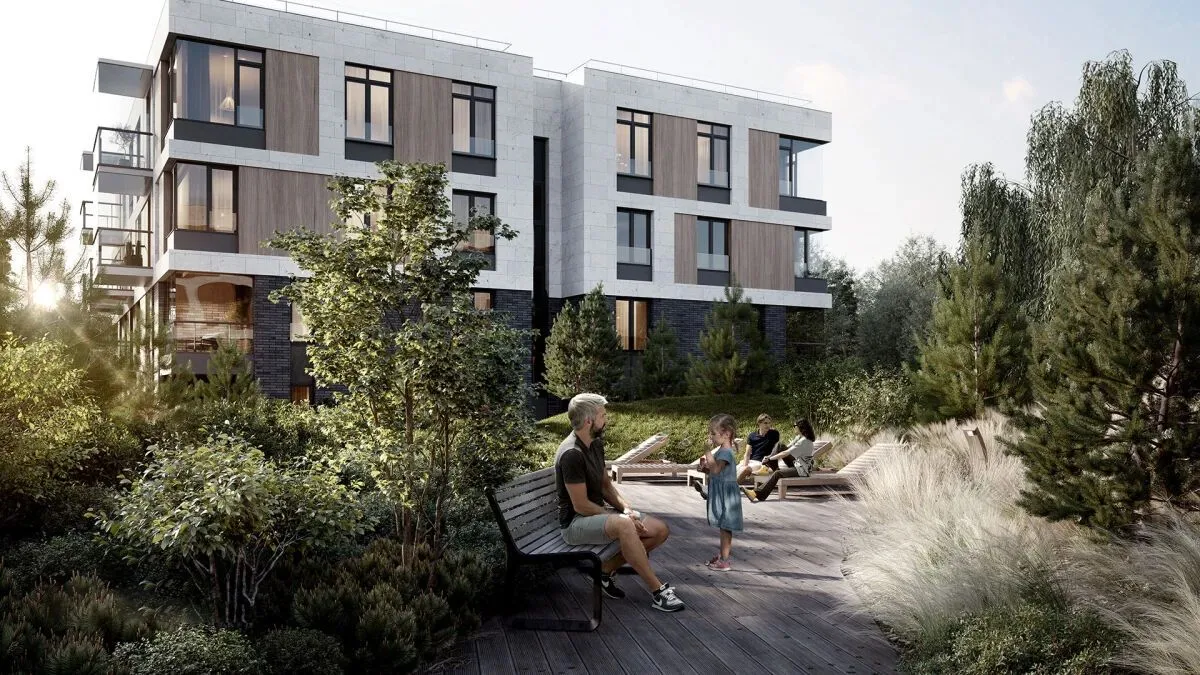 Планировки апартаментов разнообразны: площадь варьируется от 46 до 151 м. Высота потолков составляет от 3 до 3,3 м, а в двухуровневых номерах с двусветной кухней‑гостиной достигает 6,6 м. На верхних этажах предусмотрены апартаменты с террасами и выходом на кровлю, где можно установить дровяной камин. На первых этажах доступны варианты с палисадниками и отдельным входом с улицы.