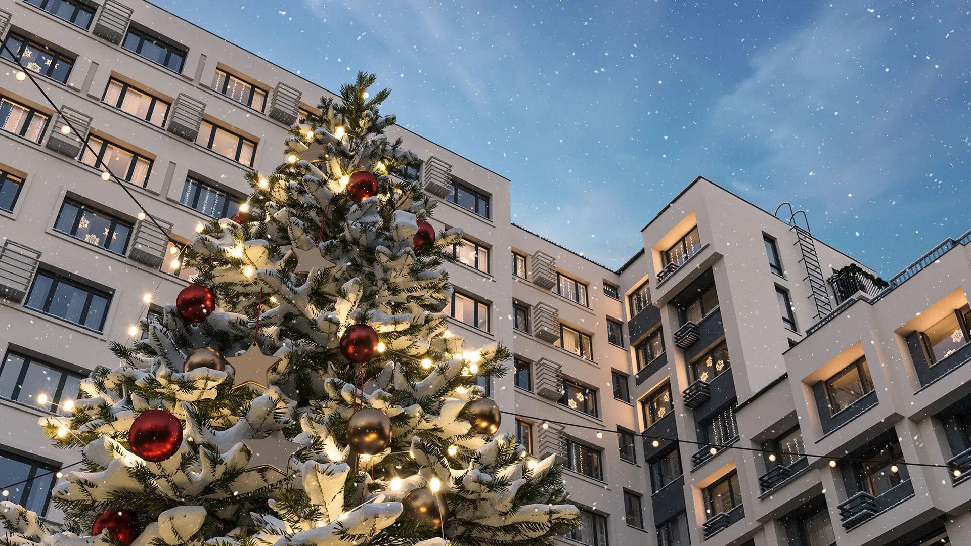 Территория комплекса полностью огорожена и находится под круглосуточной охраной. Доступ осуществляется через электронный ключ без необходимости доставать телефон или брелок. На территории обустроены разнообразные зоны отдыха: беседки у костра, фуршетные зоны с обогревателями, деревянные шезлонги. Имеются детские и спортивные площадки с профессиональными тренажёрами. Особой изюминкой двора стал декоративный водоём с кинетической скульптурой «Мобиль».