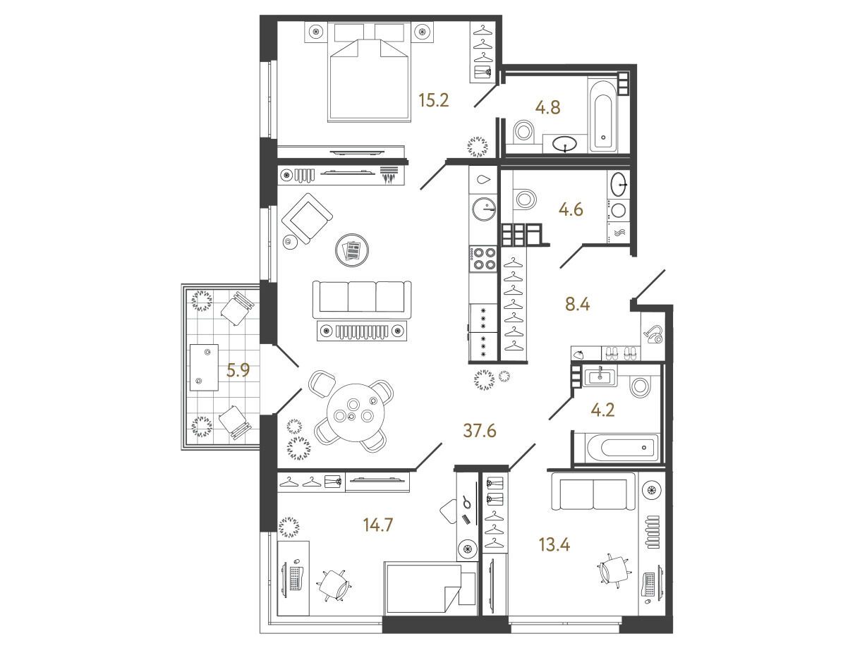 45.8 - 150.7 м²