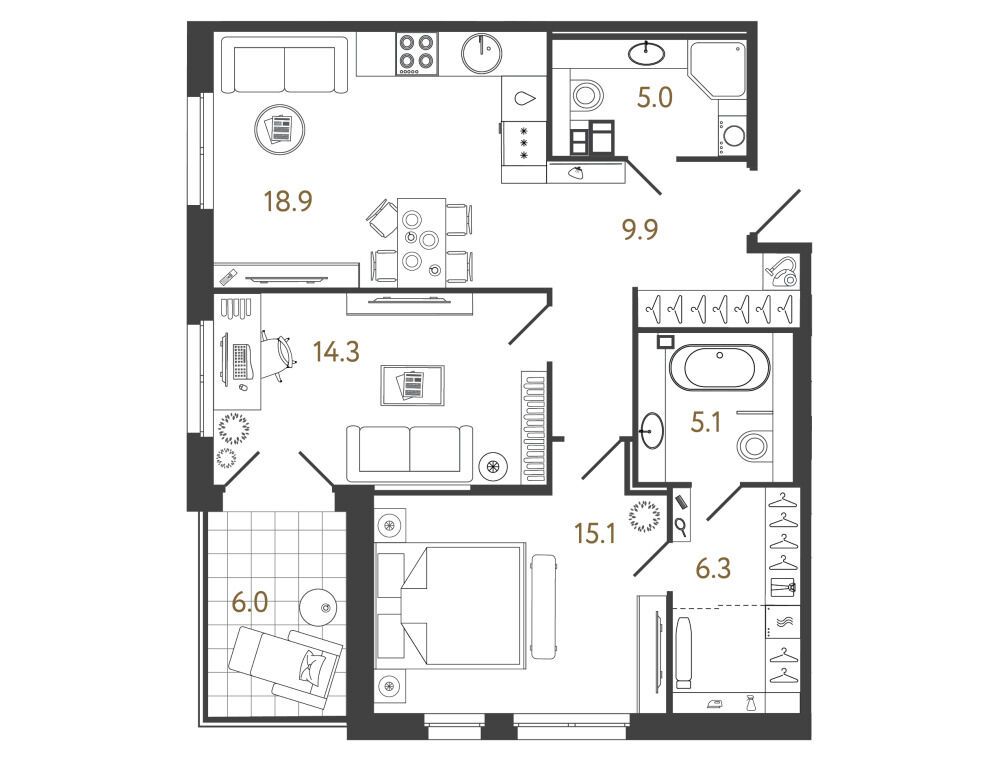 Апартаменты передаются без отделки.