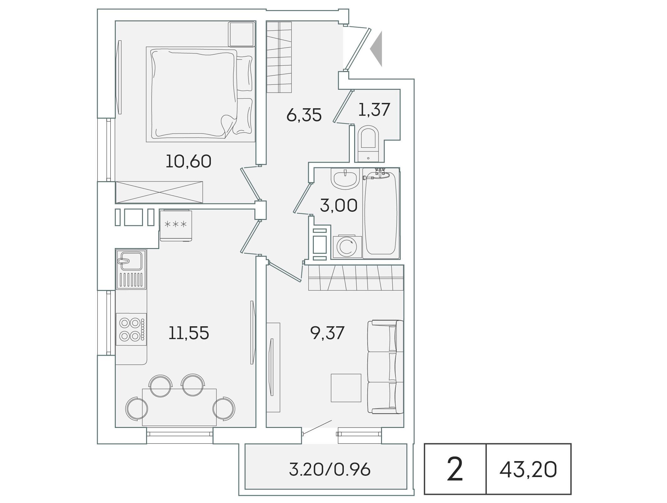 20 - 42.5 м²