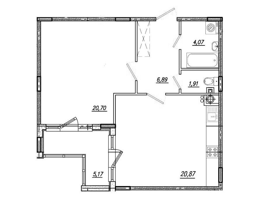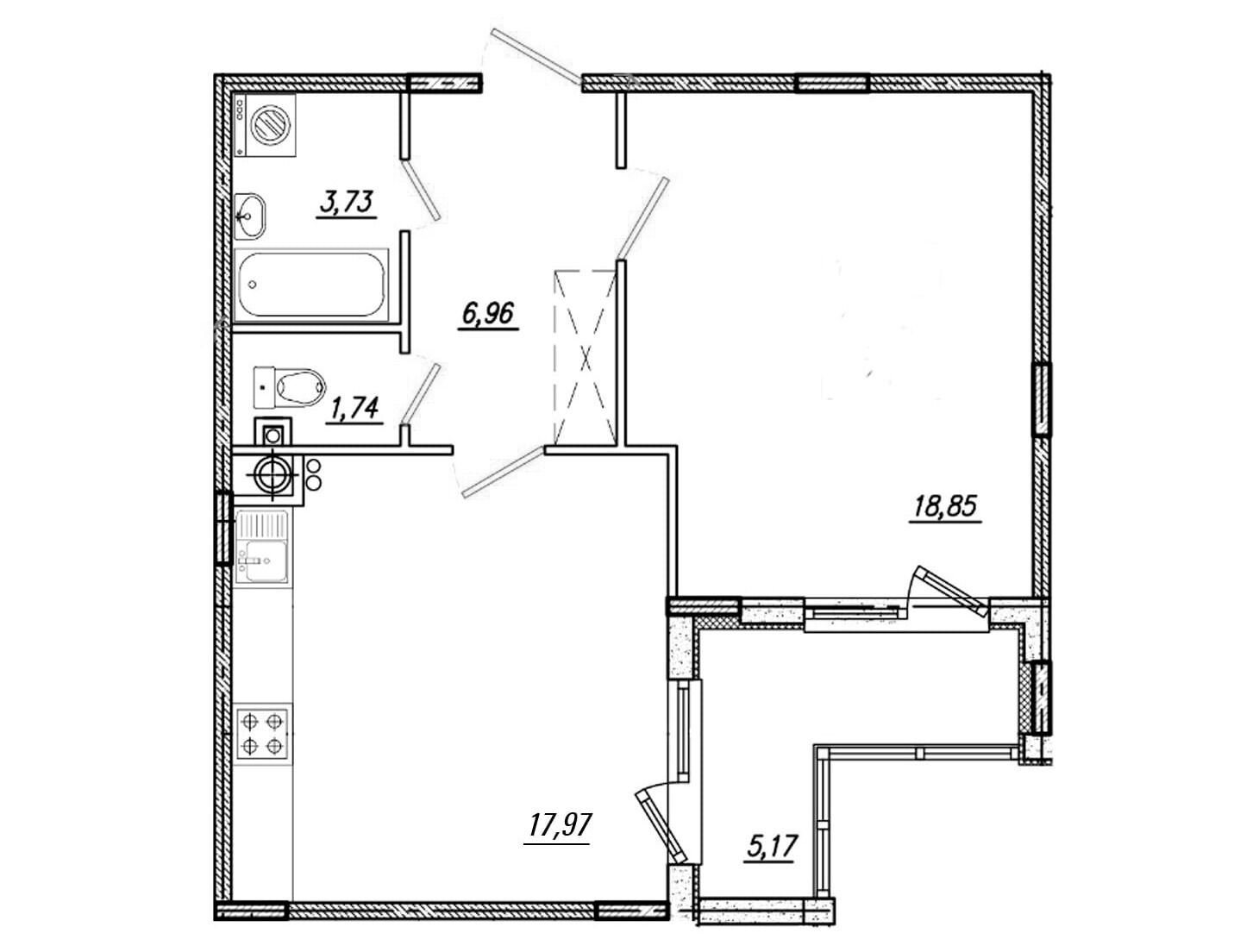 51.85 - 57.15 м²