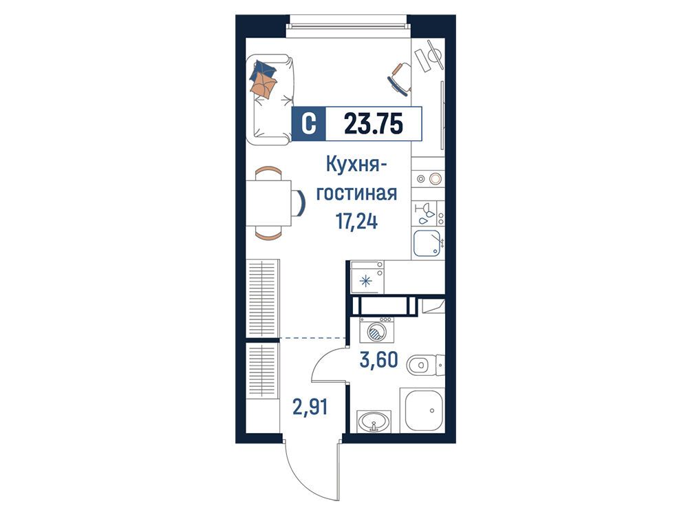 22.63 - 25.45 м²