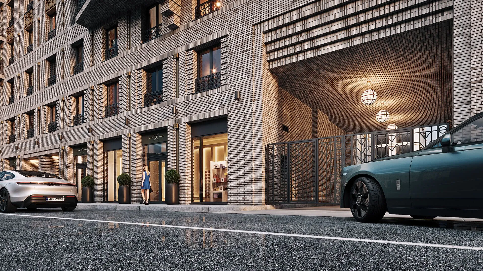 Архитектурное решение сочетает историческую ценность и современные тенденции. Фасады новых корпусов выполнены из серого кирпича с декоративными латунными вставками. В облике присутствуют элементы северного модерна: эркеры и симметричные арки, характерные для петербургской архитектуры начала XX века. Фасады дополнены системой архитектурной подсветки, придающей зданию выразительность в любое время суток.
