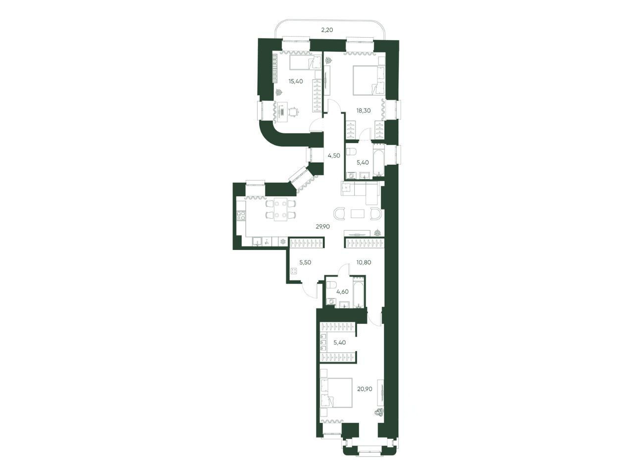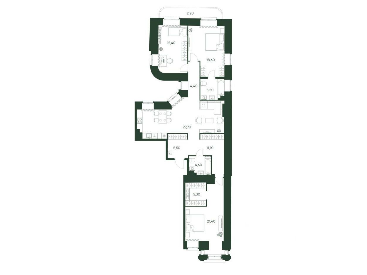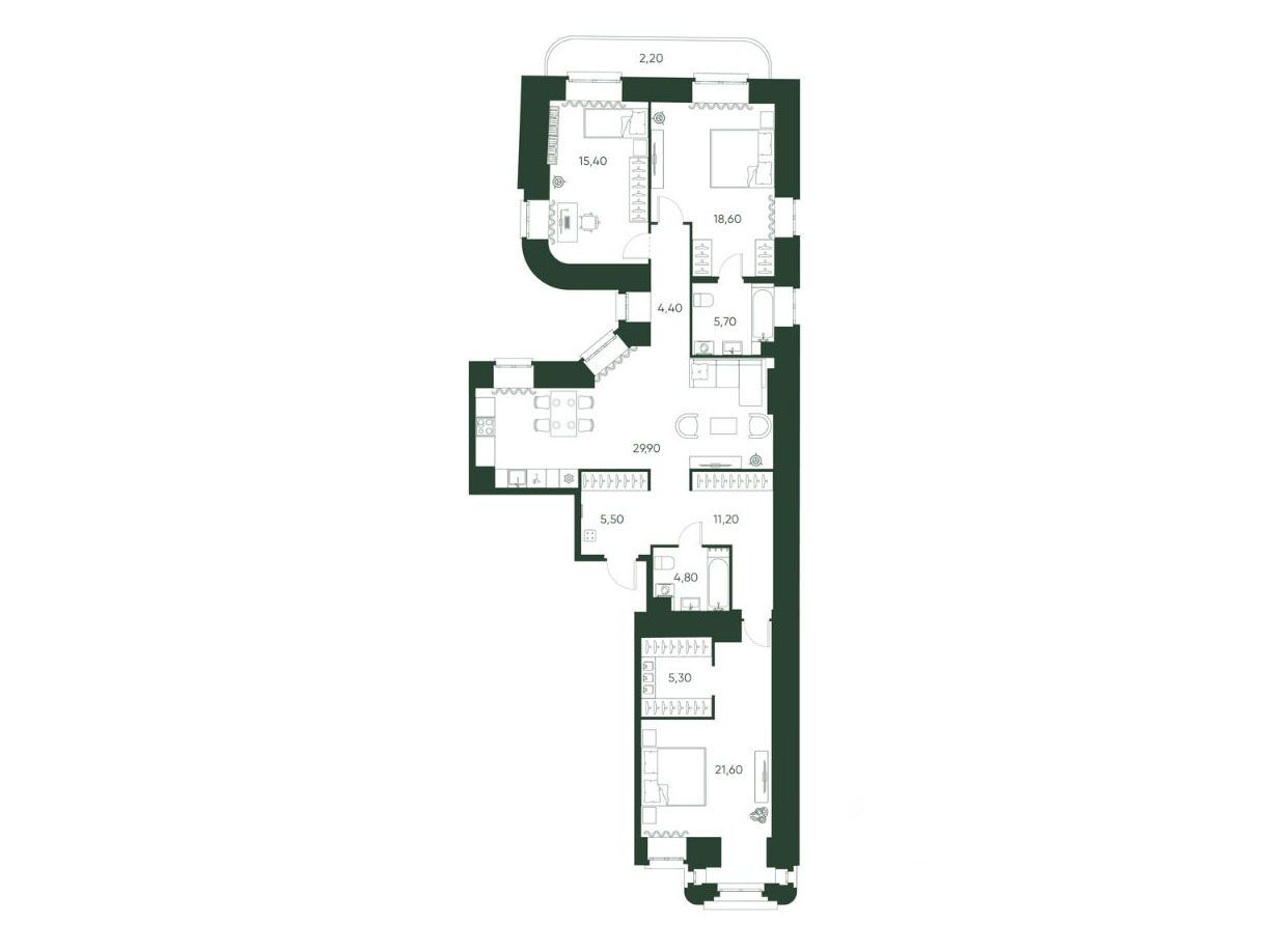 В проекте представлены квартиры от однокомнатных до просторных вариантов, включая эксклюзивный пентхаус площадью 250 м с панорамными видами на исторический центр. Высота потолков составляет от 3 до 3,3 м, предусмотрена повышенная шумоизоляция.