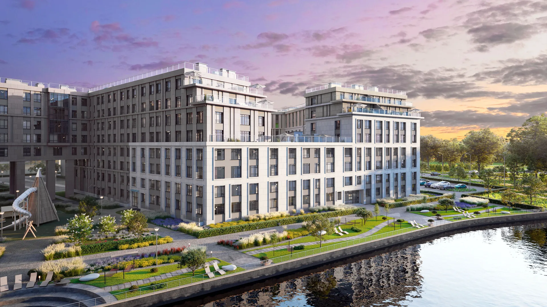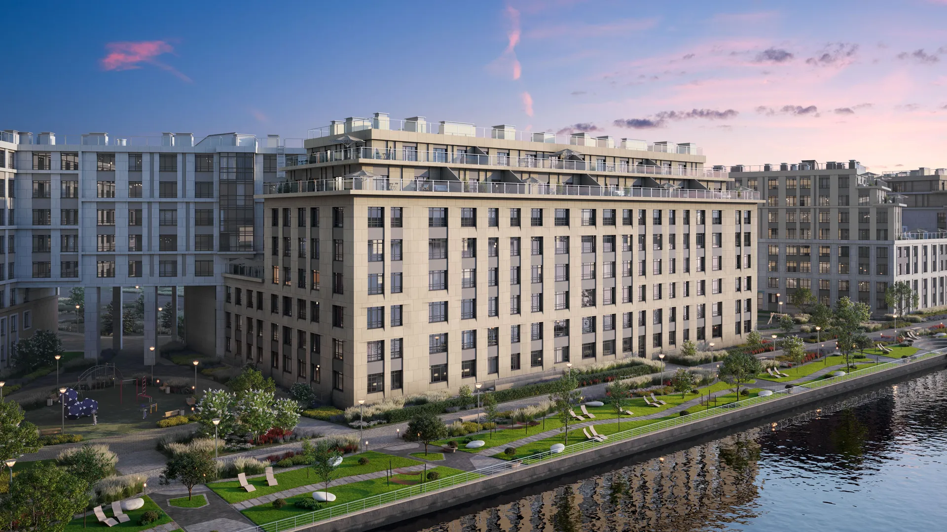 ЖК Нева Резиденс разместился в престижном районе Василеостровский в Санкт-Петербурге. В составе жилого комплекса — четыре монолитных корпуса, высотой до восьми этажей. Здания выполнены из монолитно-кирпичных материалов и отличаются современным стилем. Высота потолков в квартирах варьируется от 2,98 до 3,13 метра. Внутри помещений предлагается квартира без отделки, что открывает широкие возможности для индивидуального оформления. Территория комплекса радует глаз ландшафтным дизайном: здесь планируется разместить места для отдыха и занятий спортом на свежем воздухе. Искусственные холмы, кустарники, цветники и крупномерные деревья сформируют живую и приятную атмосферу для прогулок и встреч. На территории располагаются зоны для детей, футбольные и плавательные площадки, уголки для отдыха взрослых. Внутренние пространства украшены дизайнерскими светильниками и стильной уличной мебелью. Охраняемая территория оборудована теплым подземным паркингом с лифтом, а вдоль набережной Малой Невы проложат пешеходный променад протяжённостью 500 метров. В одном из корпусов предполагается встроенный детский сад, а на первых этажах разместятся магазины, кафе, салоны красоты, аптеки и другие объекты базового сервиса премиум-класса. Вход в торгово-сервисные зоны организован с улицы, что обеспечивает удобство для жителей и гостей. В Нева Резиденс сочетаются современность, комфорт и высокий уровень инфраструктуры.