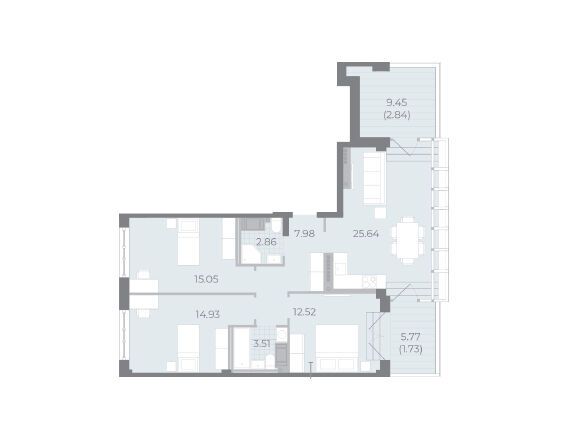 27.3 - 116.8 м²