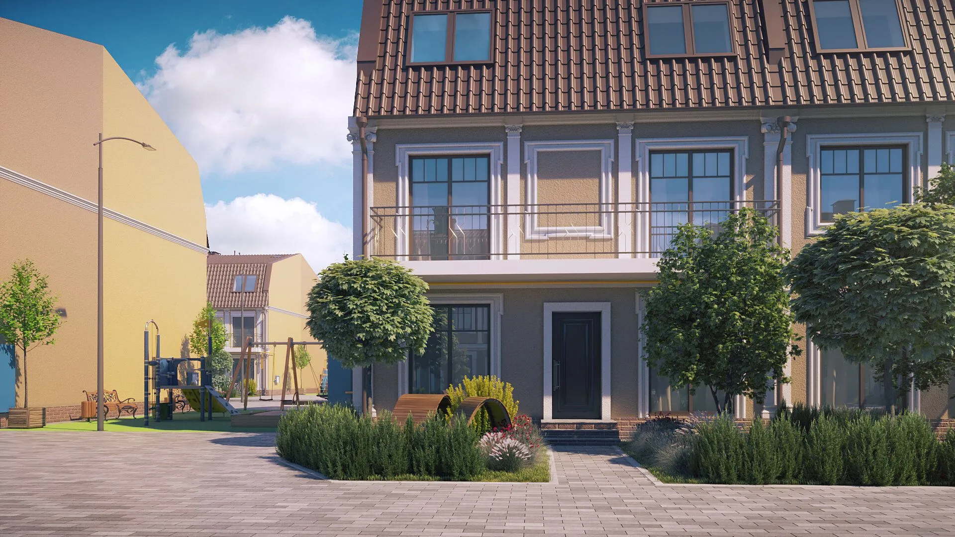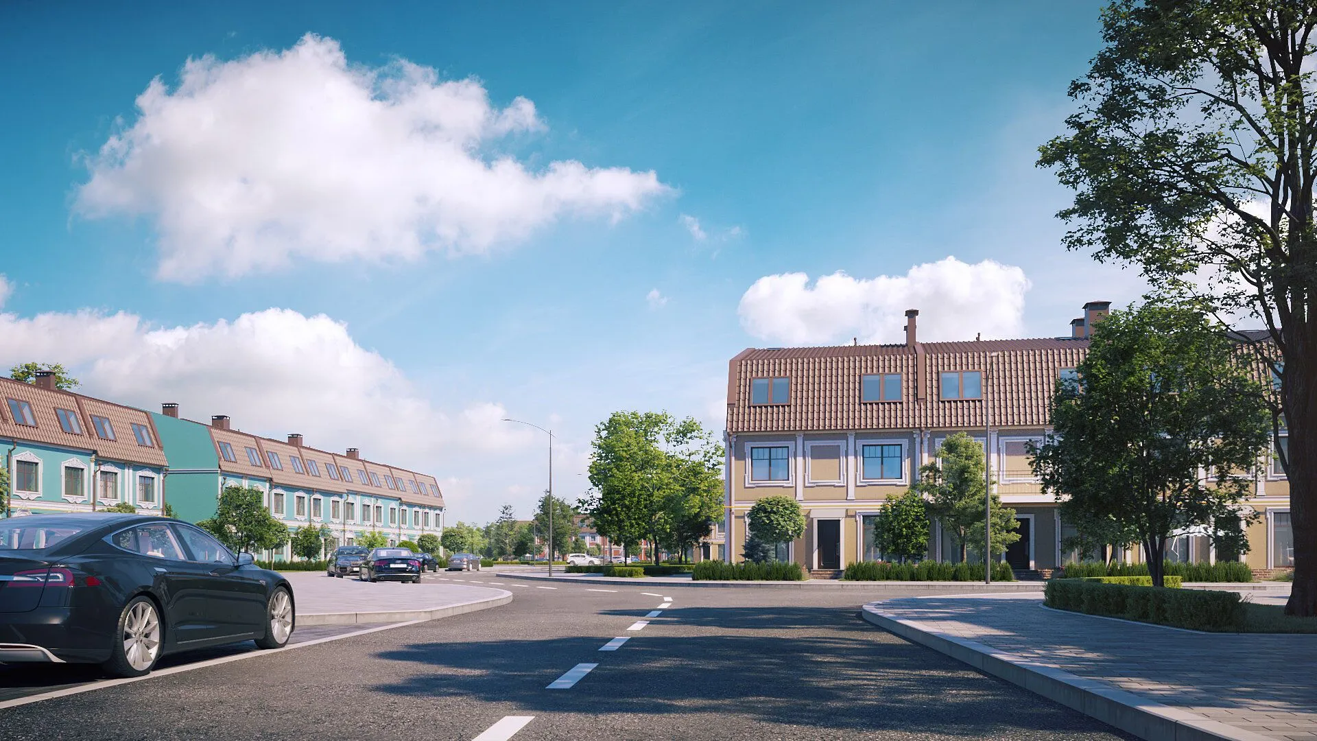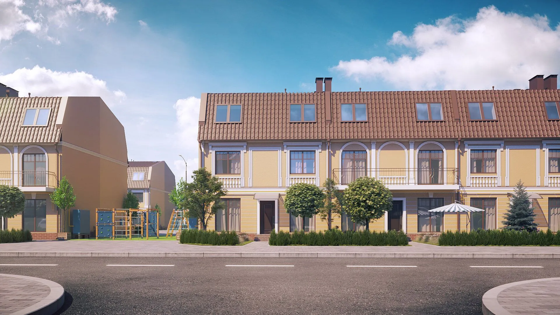 Таунхаусы трёхэтажные, включая мансардный этаж. Высота потолков варьируется: на первом этаже — 2,7 м, на втором — 2,8 м, на мансардном — до 3,72 м. Площадь домов составляет от 112 до 270 м². Каждый таунхаус имеет отдельный вход и собственный палисадник. В ряде домов предусмотрен гараж на первом этаже. На каждом этаже размещён санузел; некоторые варианты включают панорамные окна и балконы.