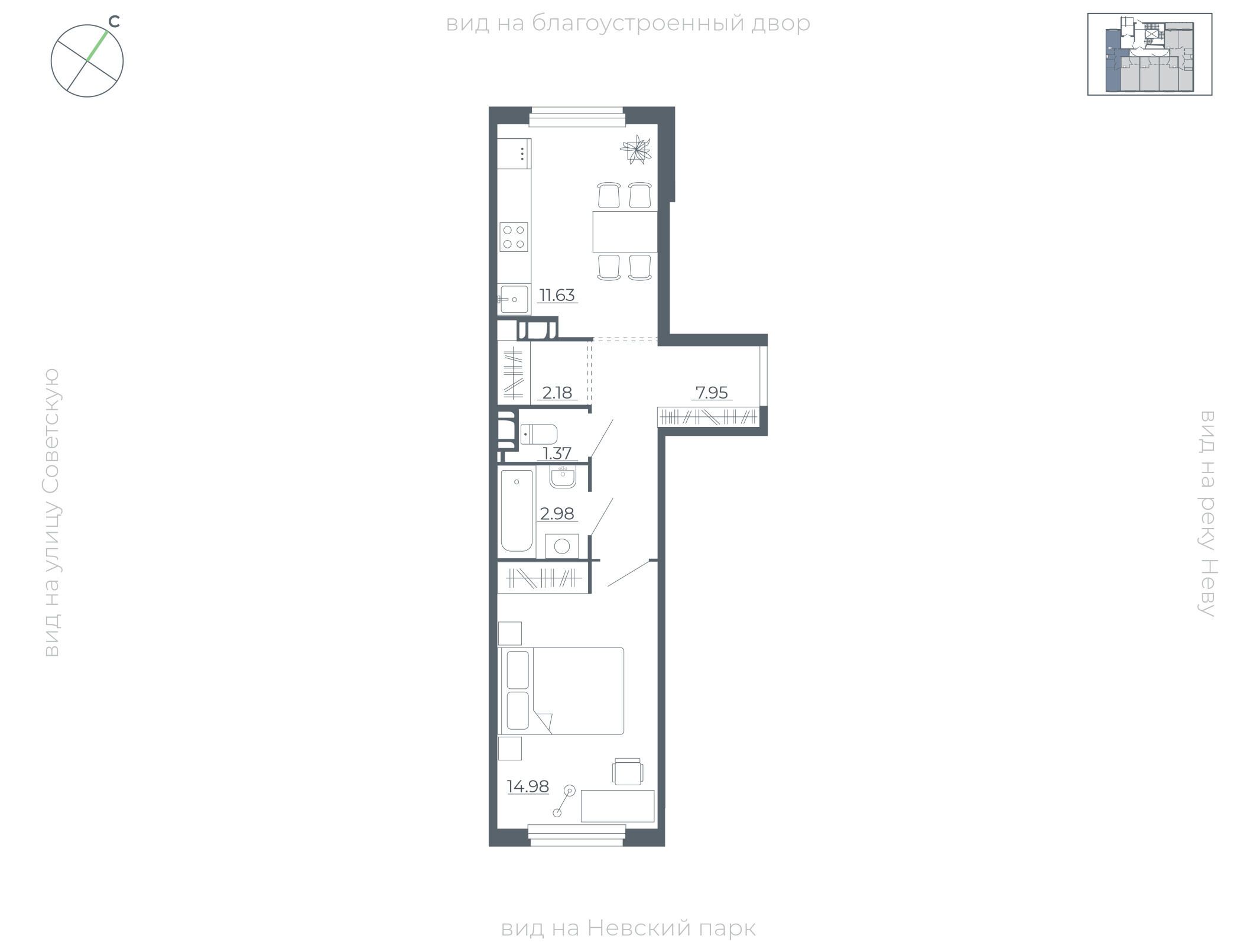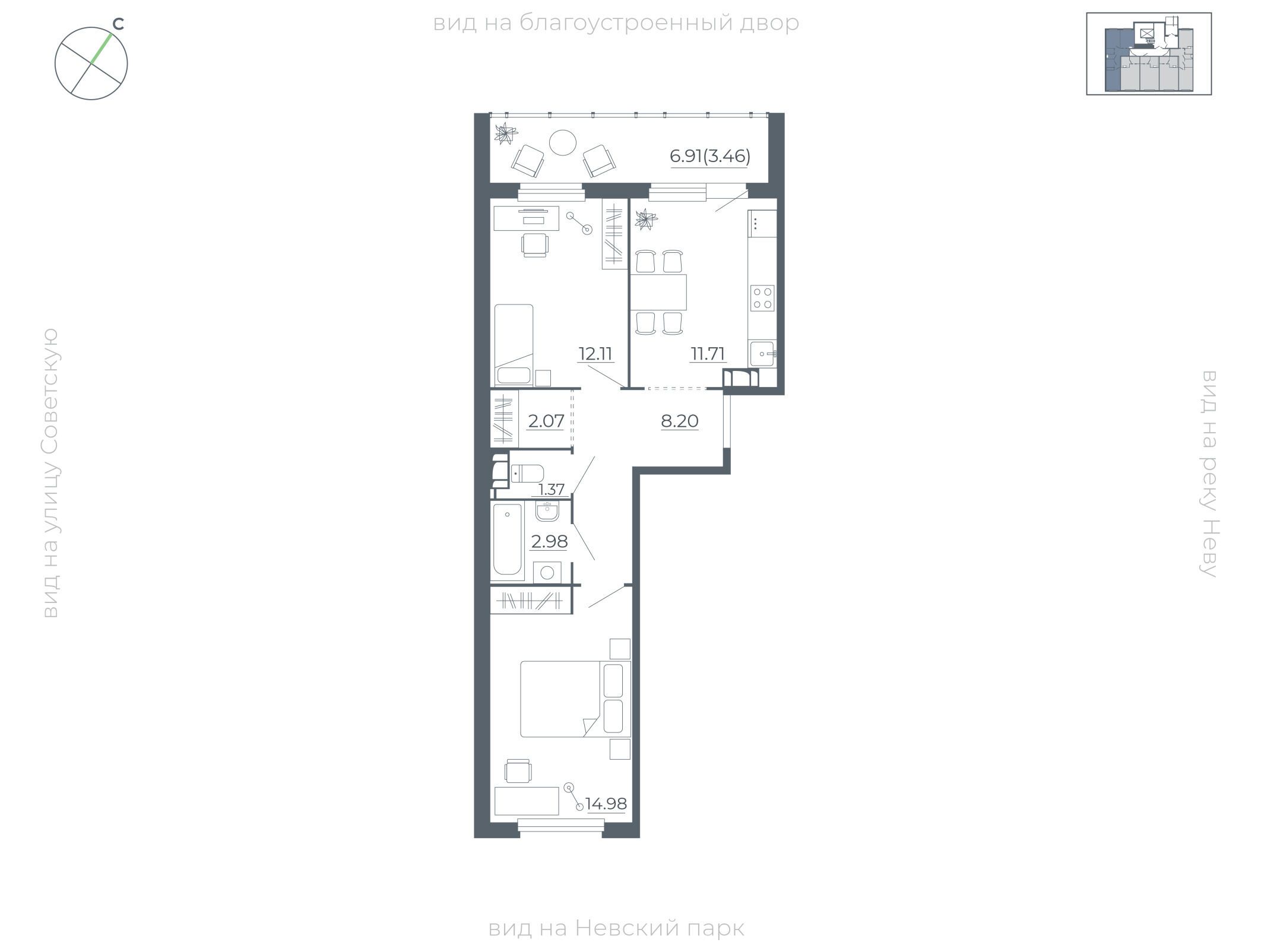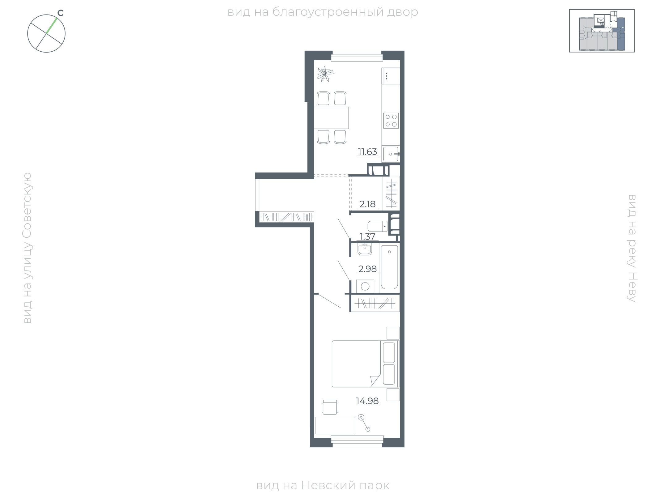 В шаговой доступности от ЖК — вся необходимая инфраструктура: школа и детский сад, поликлиника, супермаркеты («Магнит», «Пятёрочка»), торговый центр «Рома», кафе и рестораны. Рядом находится яхт‑клуб «Морские волки», а также парки «Невский парк» и «Надежда» с прогулочными дорожками и смотровой площадкой. До набережной Невы и песчаного пляжа можно дойти всего за минуту.
