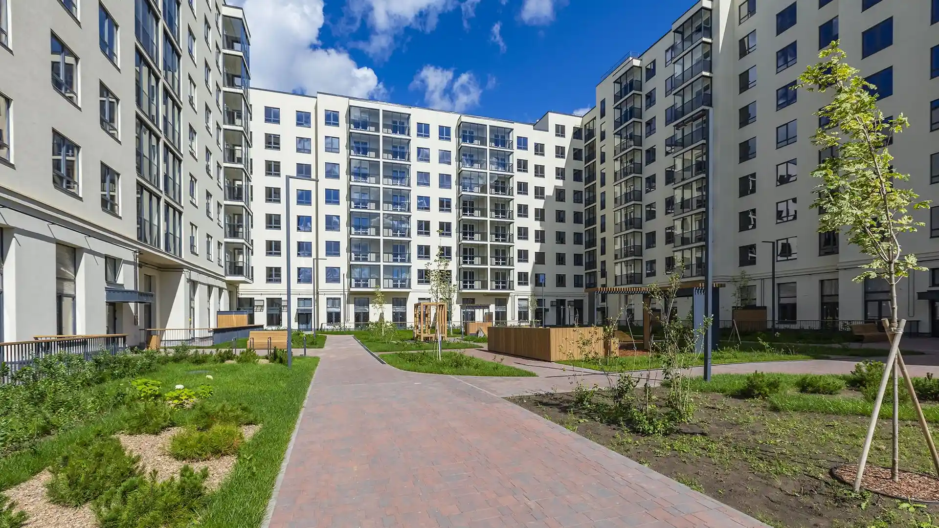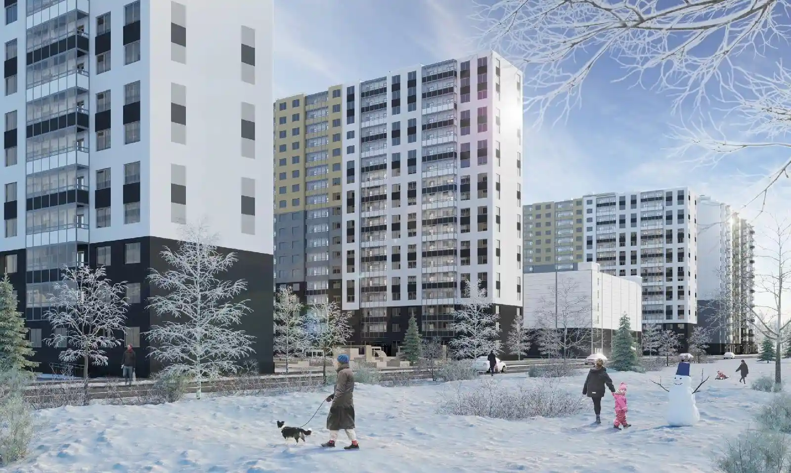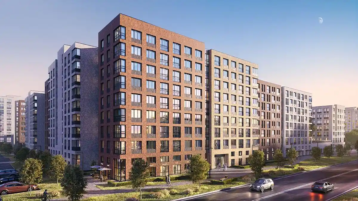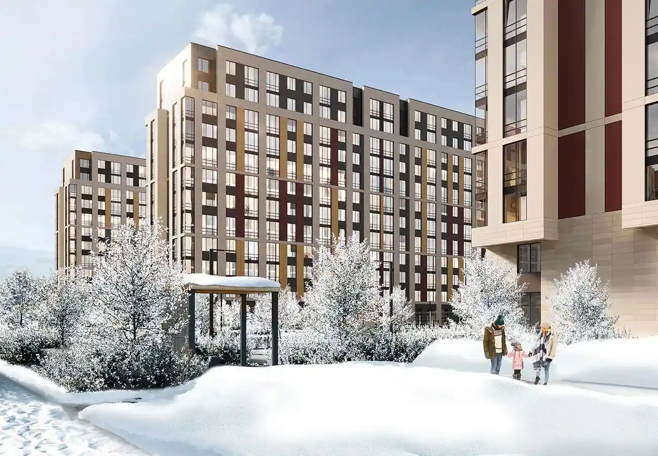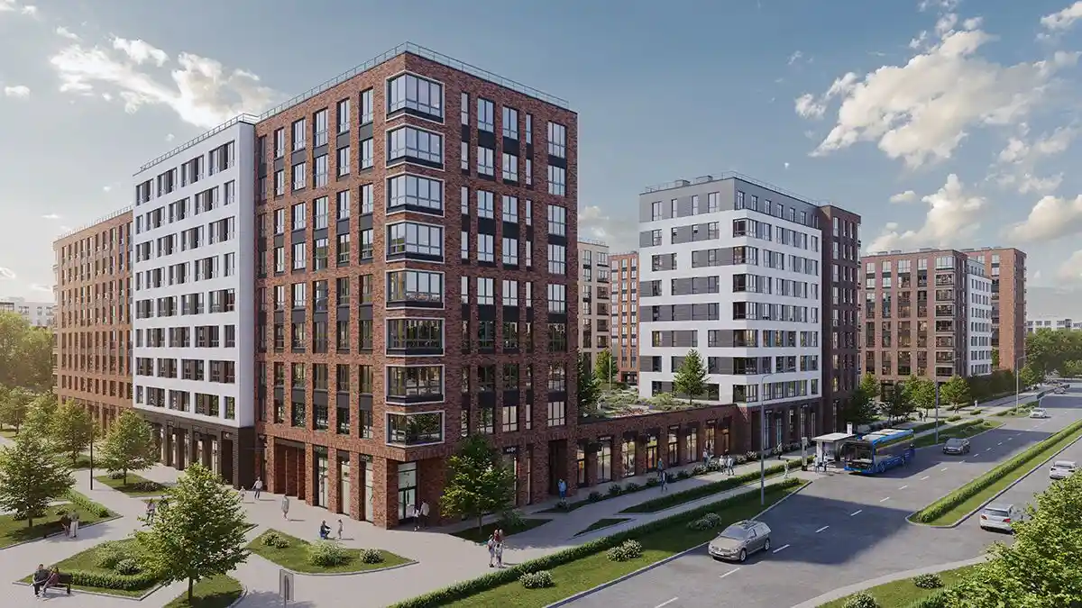 Высотность зданий в комплексе ограничена 6–12 этажами, что создает соразмерную человеку городскую среду. Квартирография исключает формат студий, ориентируясь на семейного покупателя, и включает одно-, двух- и трехкомнатные квартиры площадью от 36 до 100 кв. м с высотой потолков от 2,75 метра.