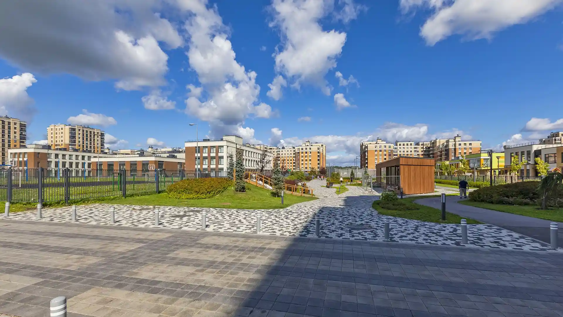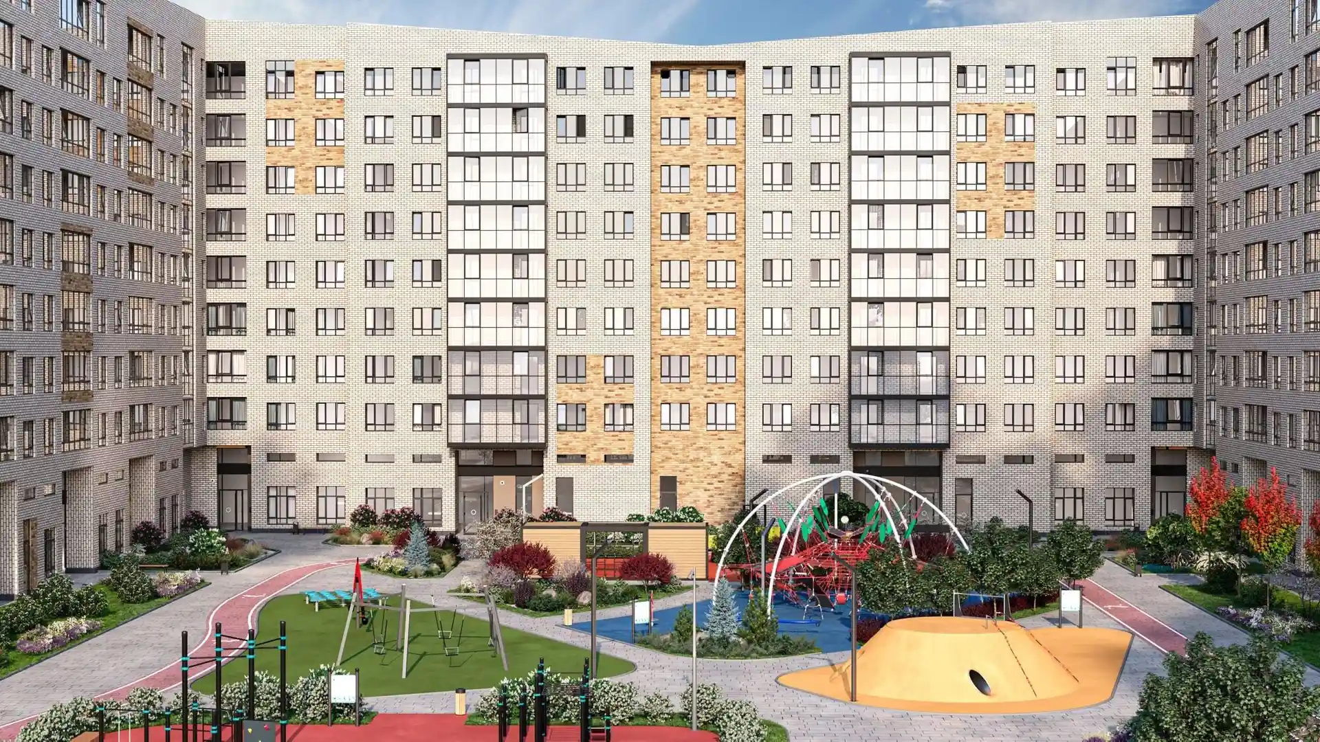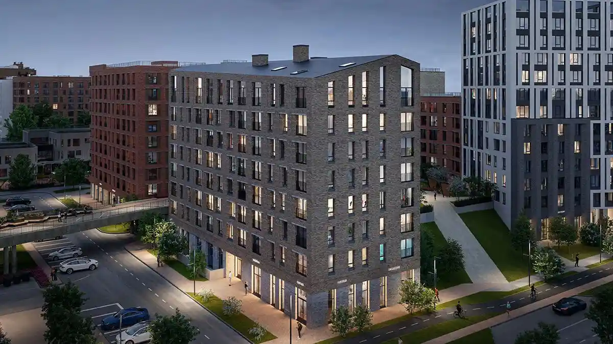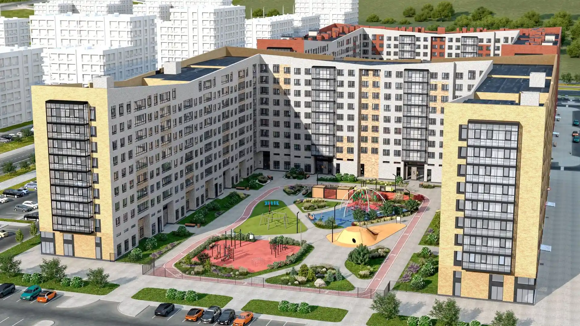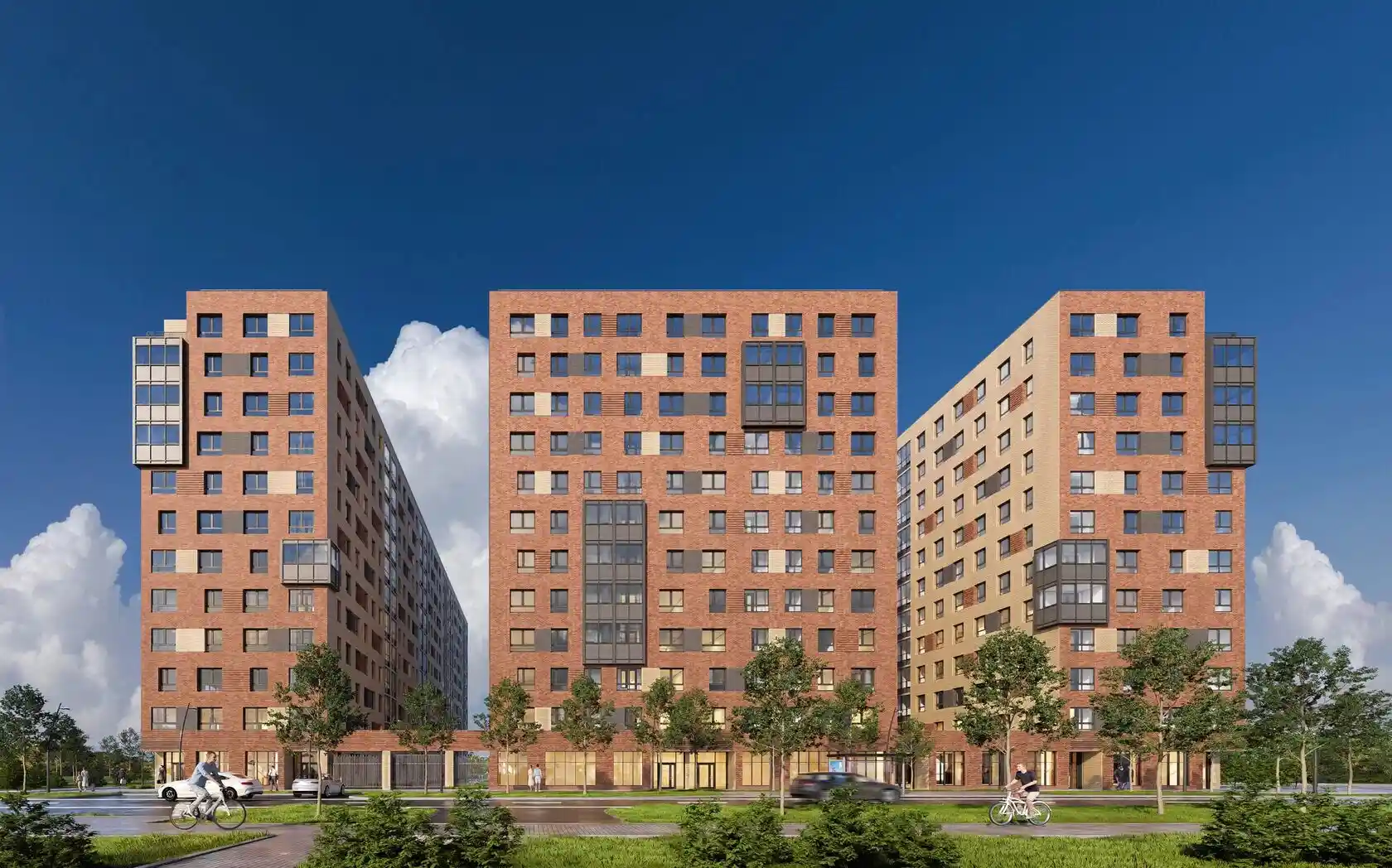 Высотность зданий в комплексе ограничена 6–12 этажами, что создает соразмерную человеку городскую среду. Квартирография исключает формат студий, ориентируясь на семейного покупателя, и включает одно-, двух- и трехкомнатные квартиры площадью от 36 до 100 кв. м с высотой потолков от 2,75 метра.