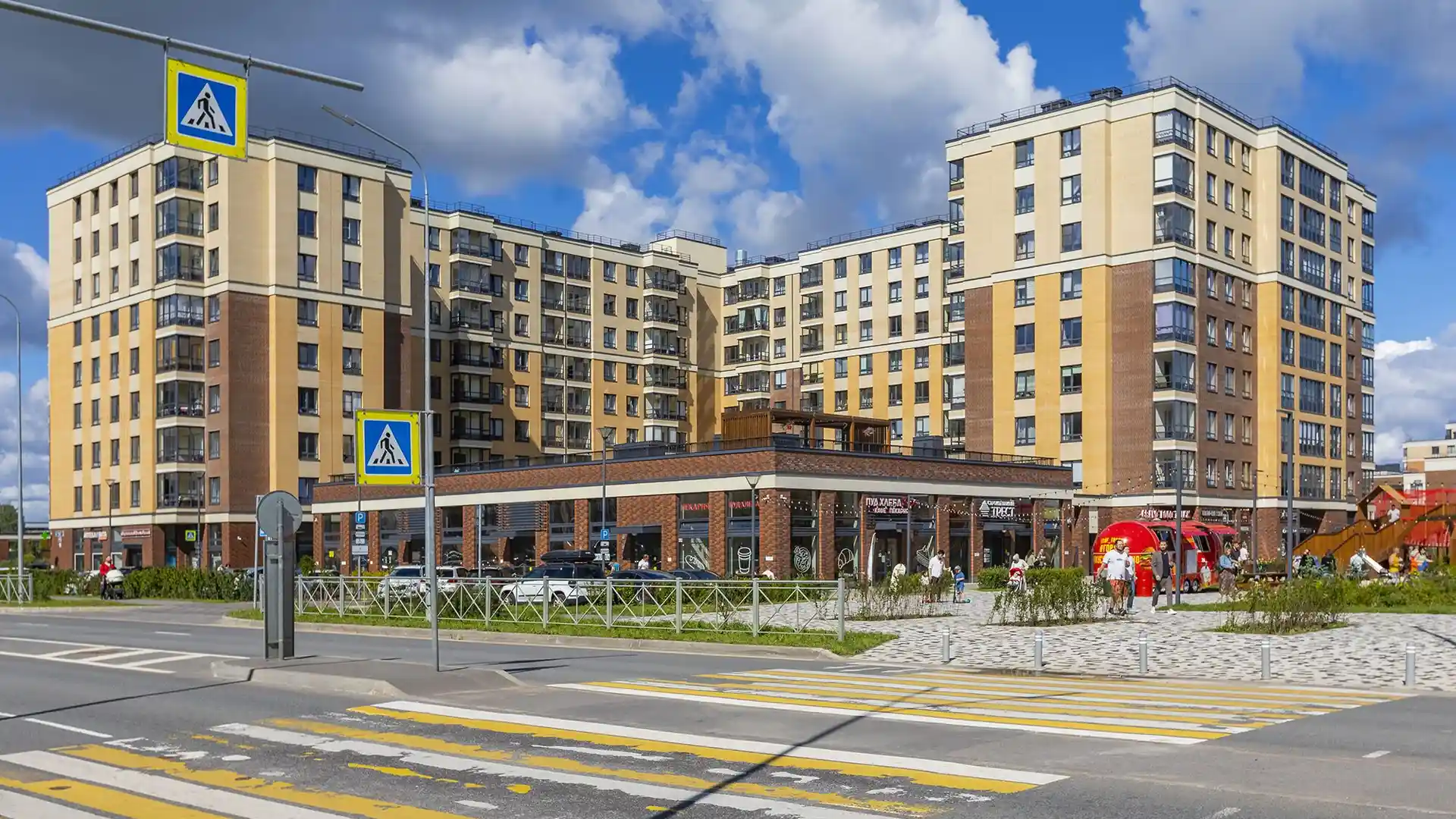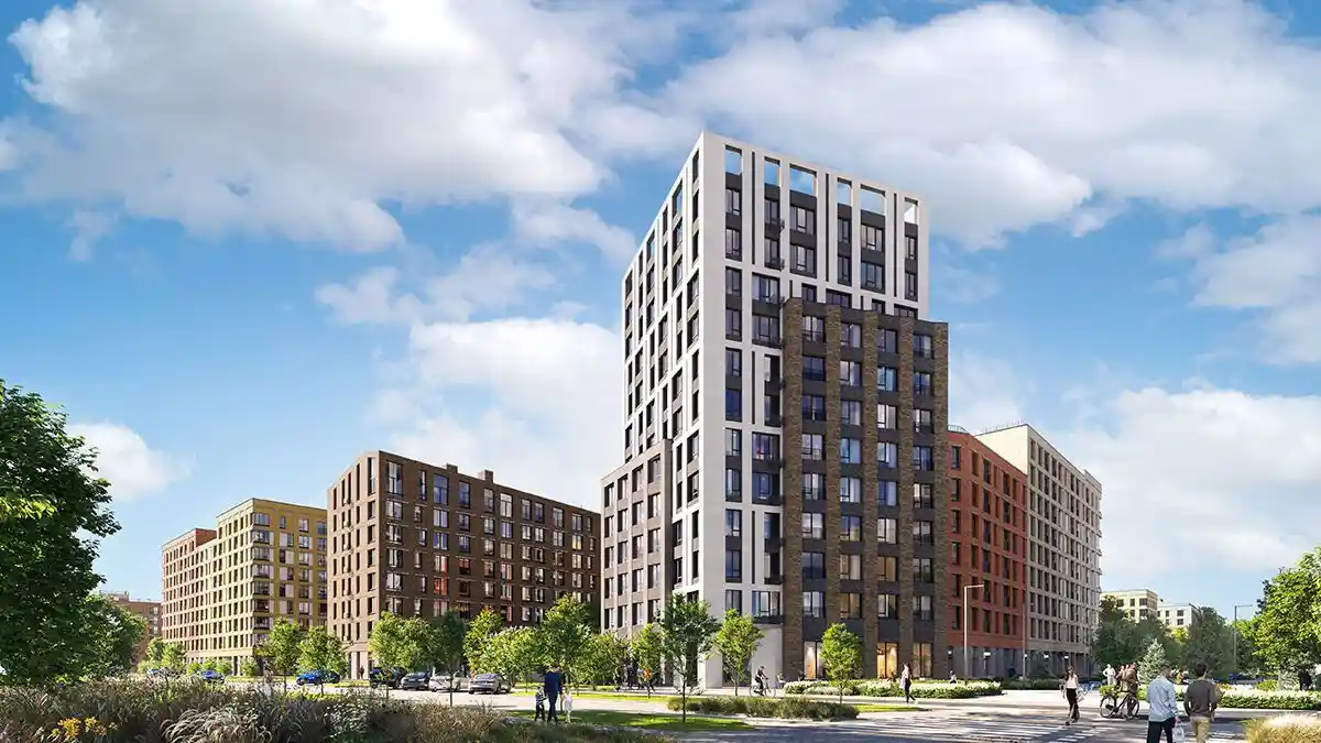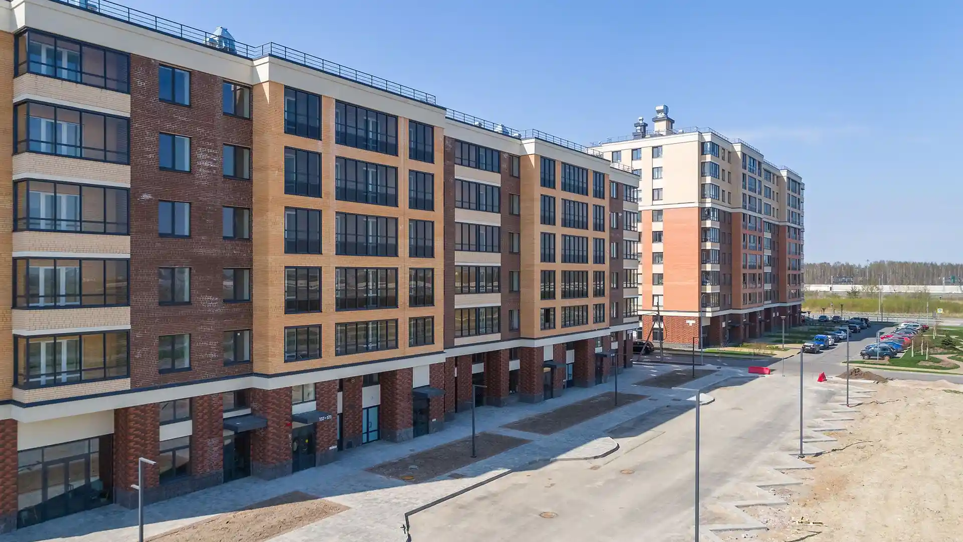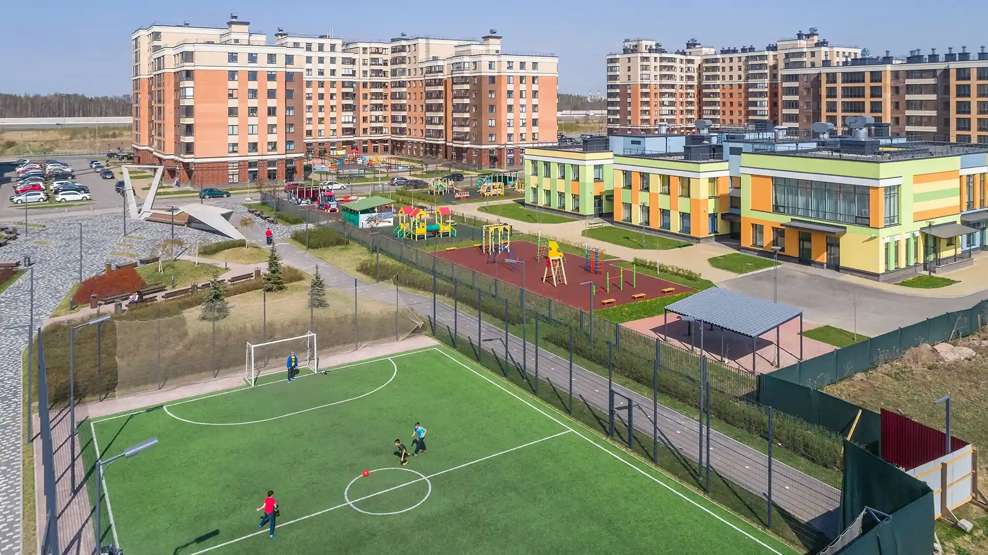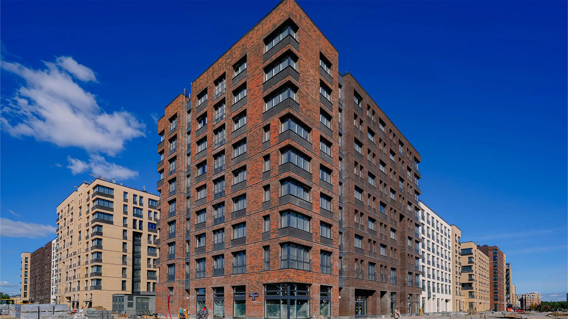 Высотность зданий в комплексе ограничена 6–12 этажами, что создает соразмерную человеку городскую среду. Квартирография исключает формат студий, ориентируясь на семейного покупателя, и включает одно-, двух- и трехкомнатные квартиры площадью от 36 до 100 кв. м с высотой потолков от 2,75 метра.