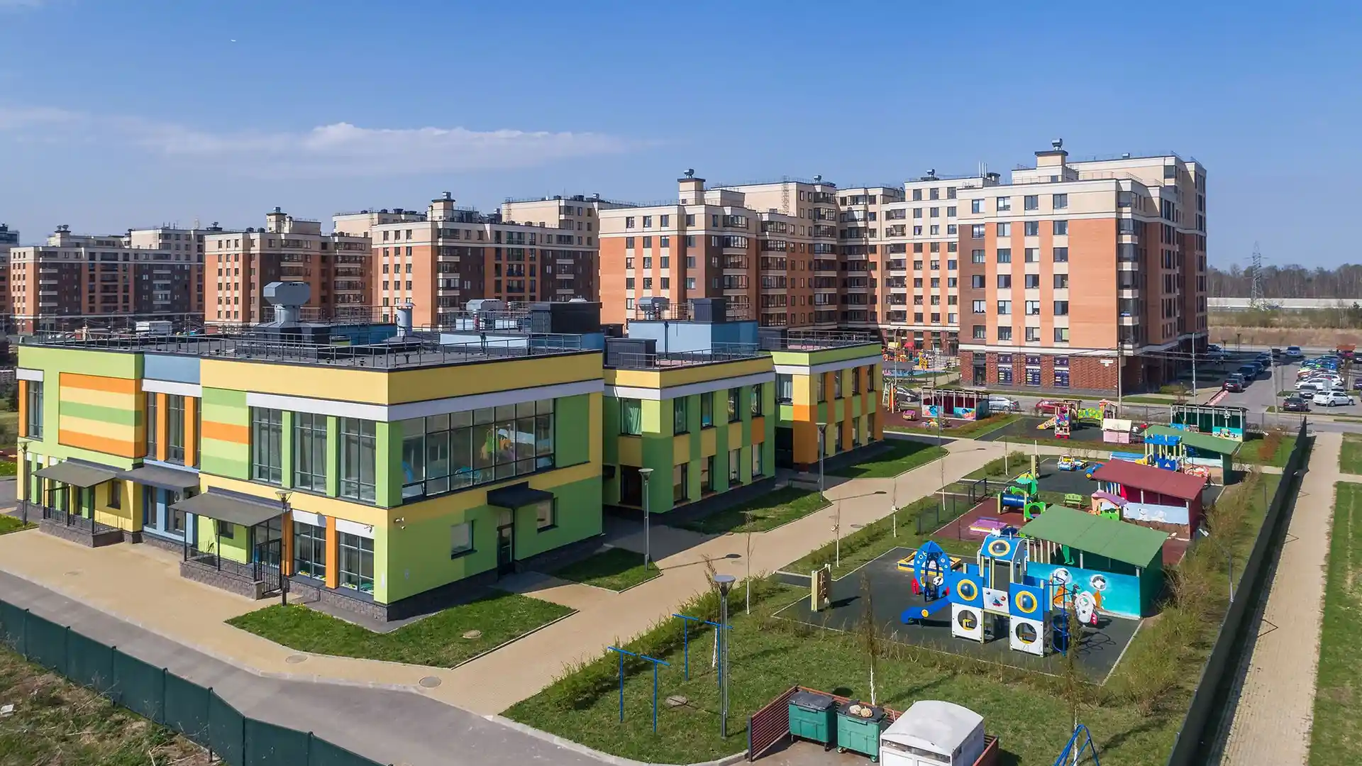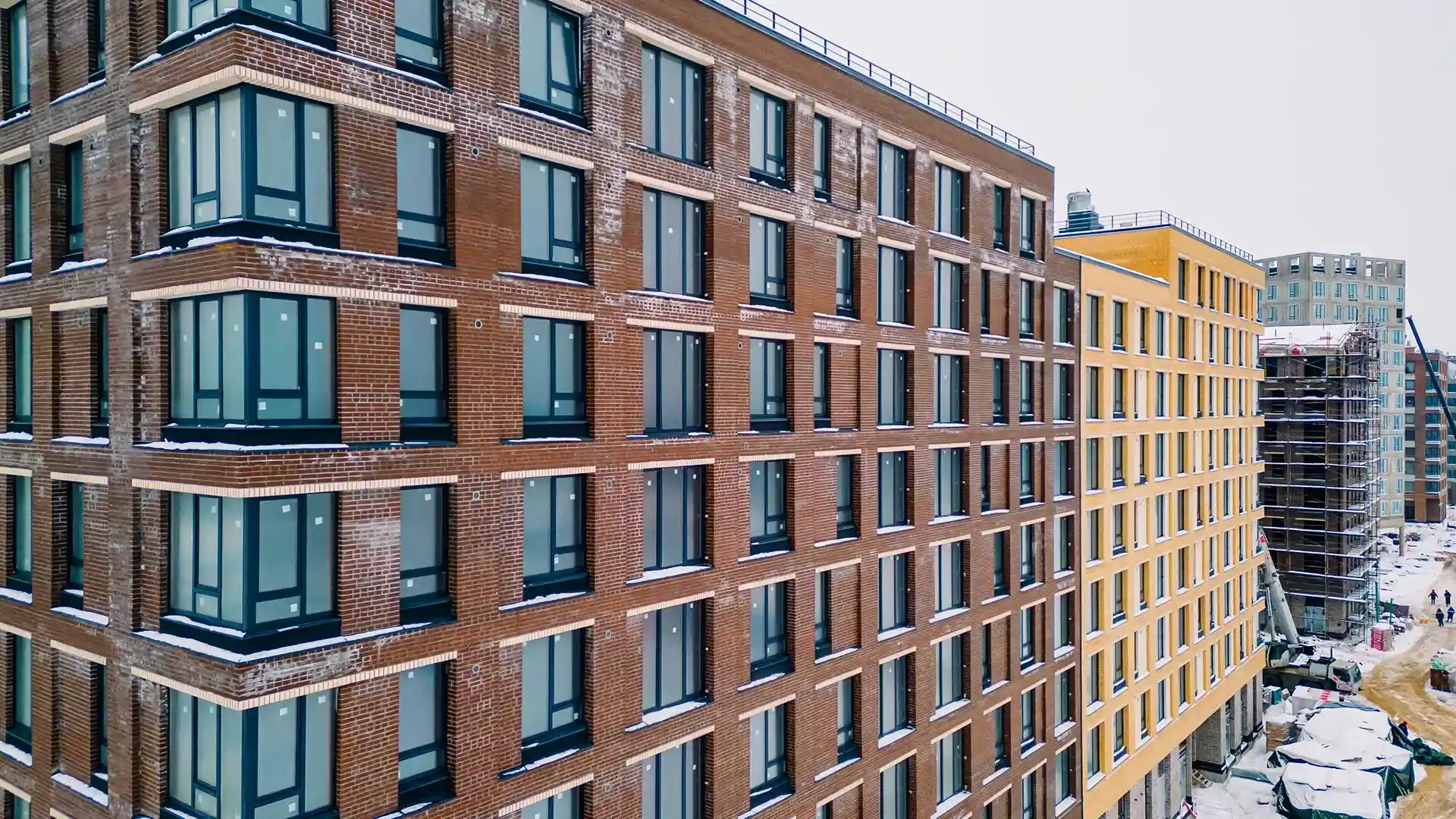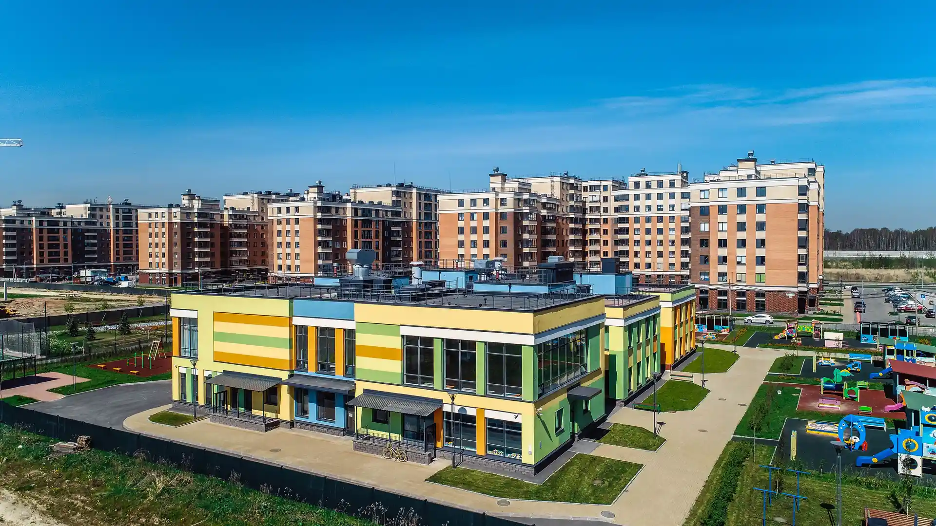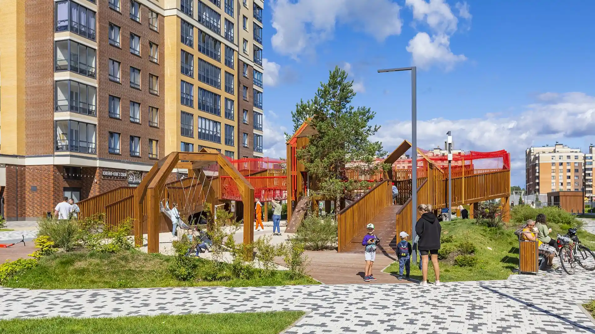Высотность зданий в комплексе ограничена 6–12 этажами, что создает соразмерную человеку городскую среду. Квартирография исключает формат студий, ориентируясь на семейного покупателя, и включает одно-, двух- и трехкомнатные квартиры площадью от 36 до 100 кв. м с высотой потолков от 2,75 метра.