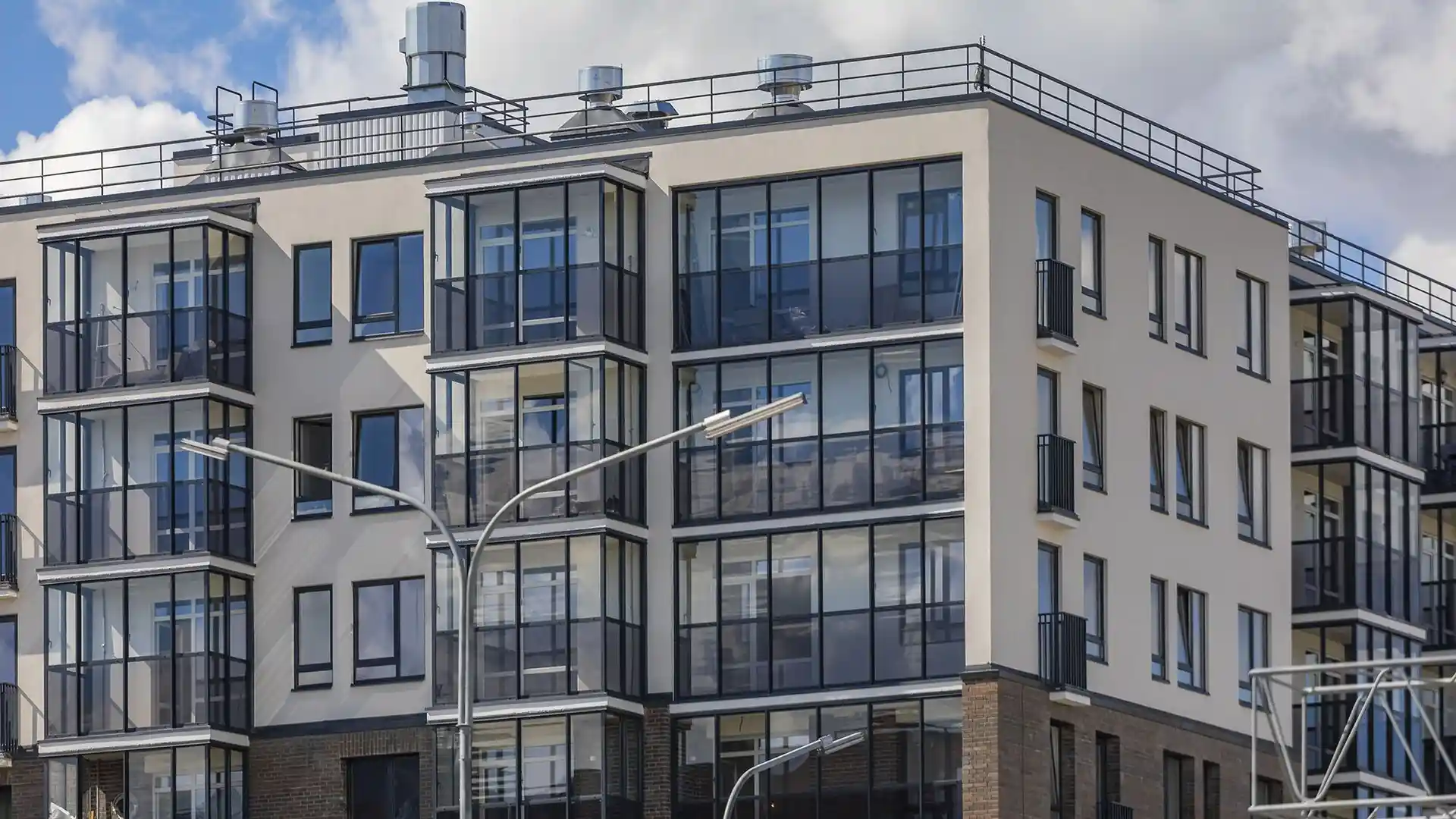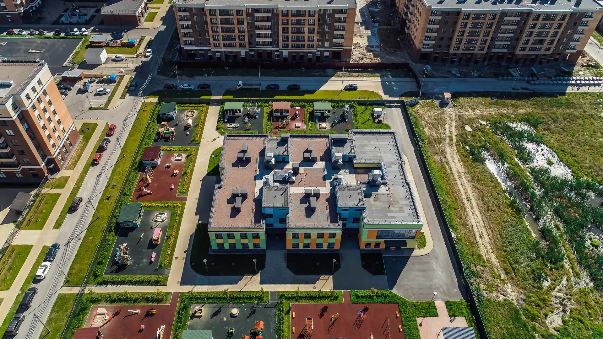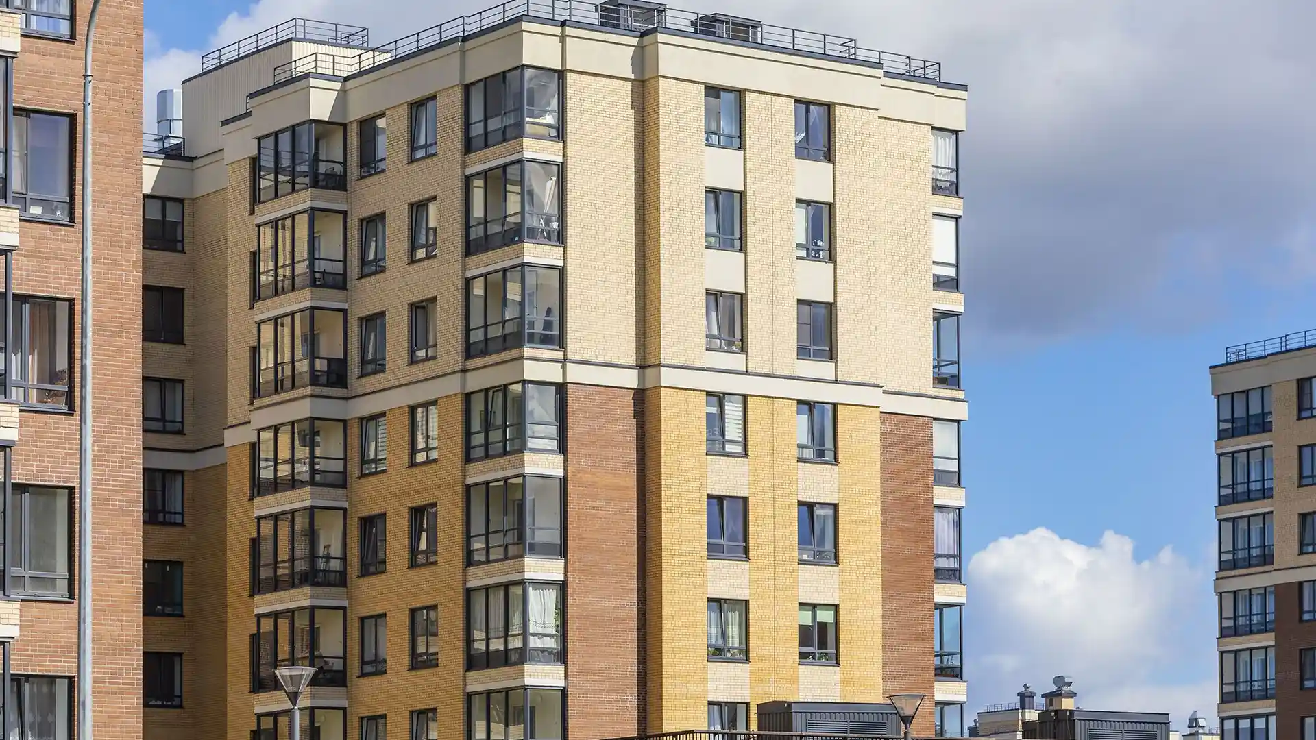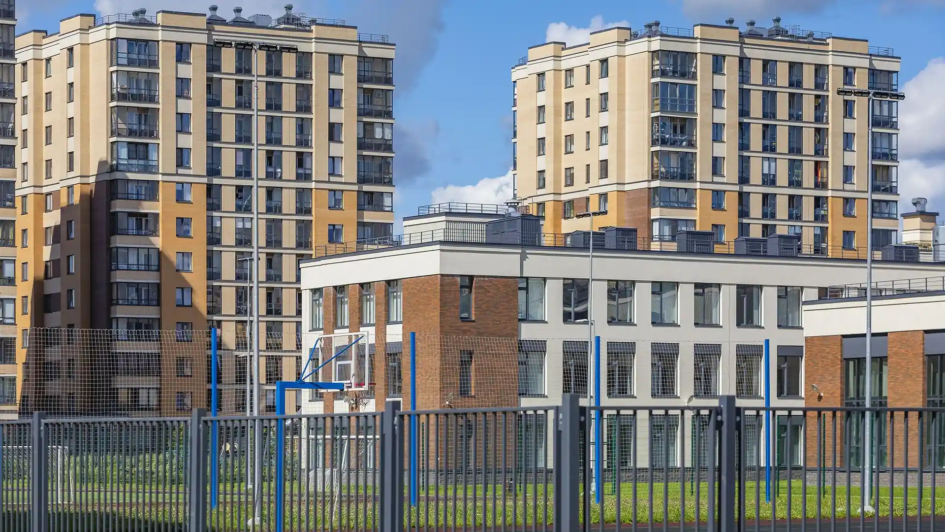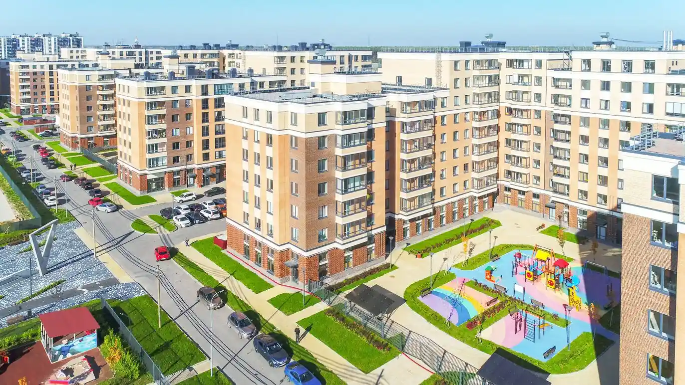 Высотность зданий в комплексе ограничена 6–12 этажами, что создает соразмерную человеку городскую среду. Квартирография исключает формат студий, ориентируясь на семейного покупателя, и включает одно-, двух- и трехкомнатные квартиры площадью от 36 до 100 кв. м с высотой потолков от 2,75 метра.