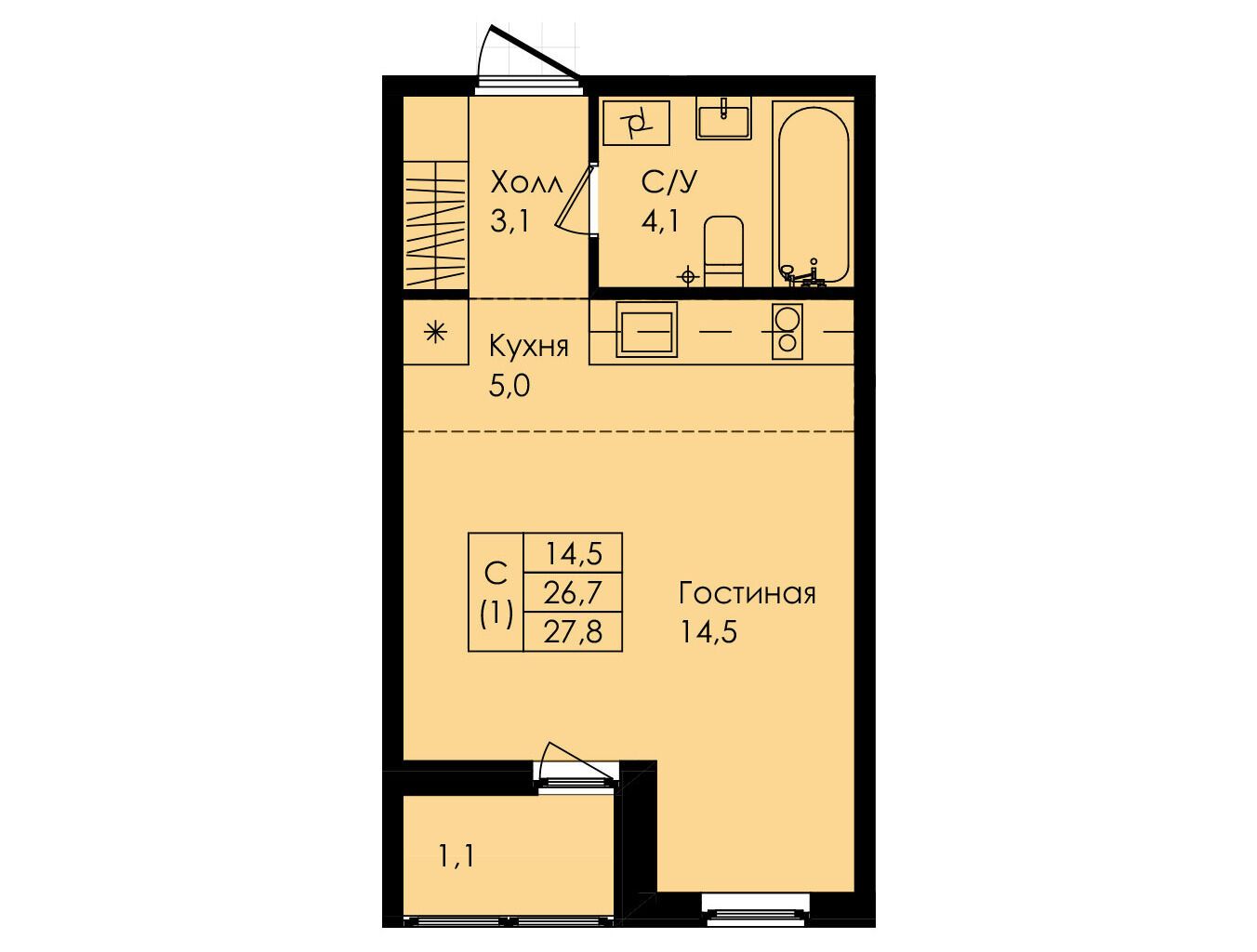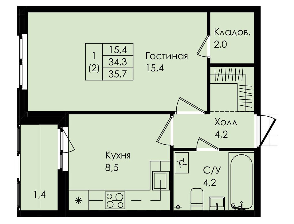 27.6 - 35.7 м²