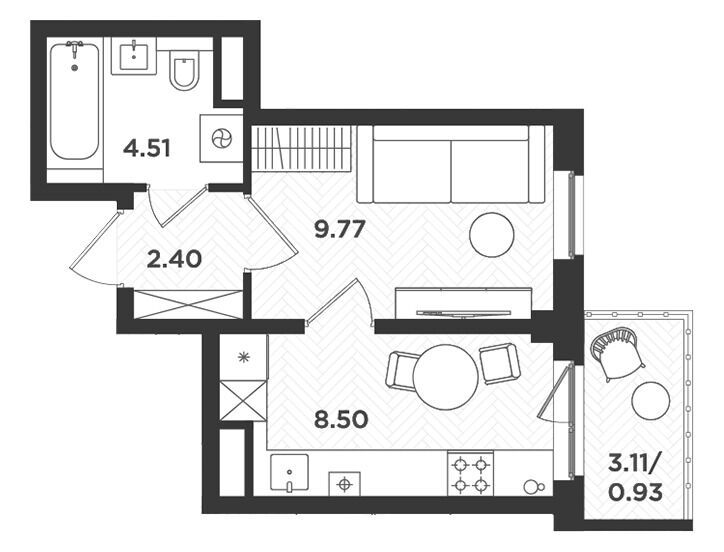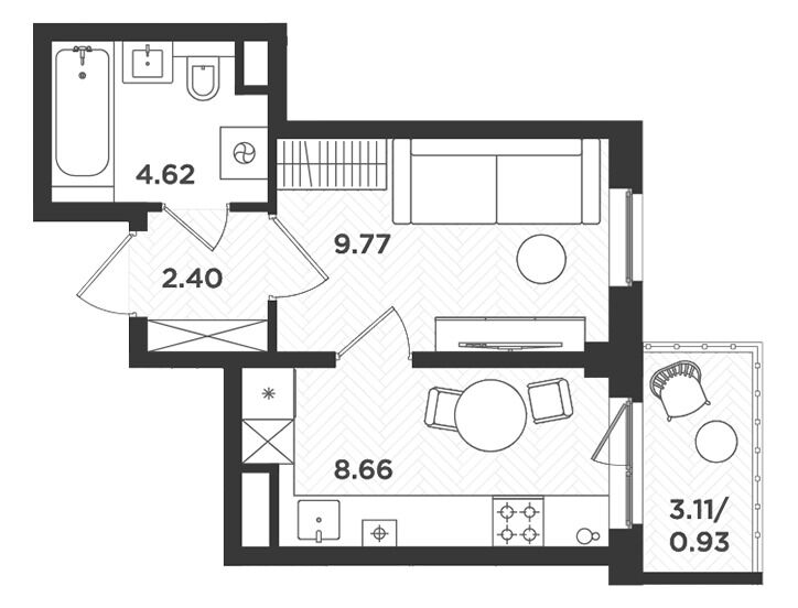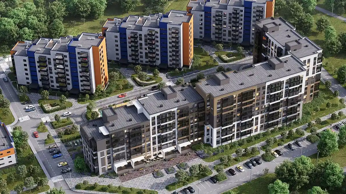 В комплексе представлены одно-, двух- и трёхкомнатные квартиры, а также двухуровневые помещения в таунхаусах. Площадь лотов варьируется от 27 до 83 м². Квартиры сдаются в отделке grey key (предчистовая). Во многих лотах предусмотрена застеклённая лоджия. В каждой квартире установлены надёжные металлические двери.