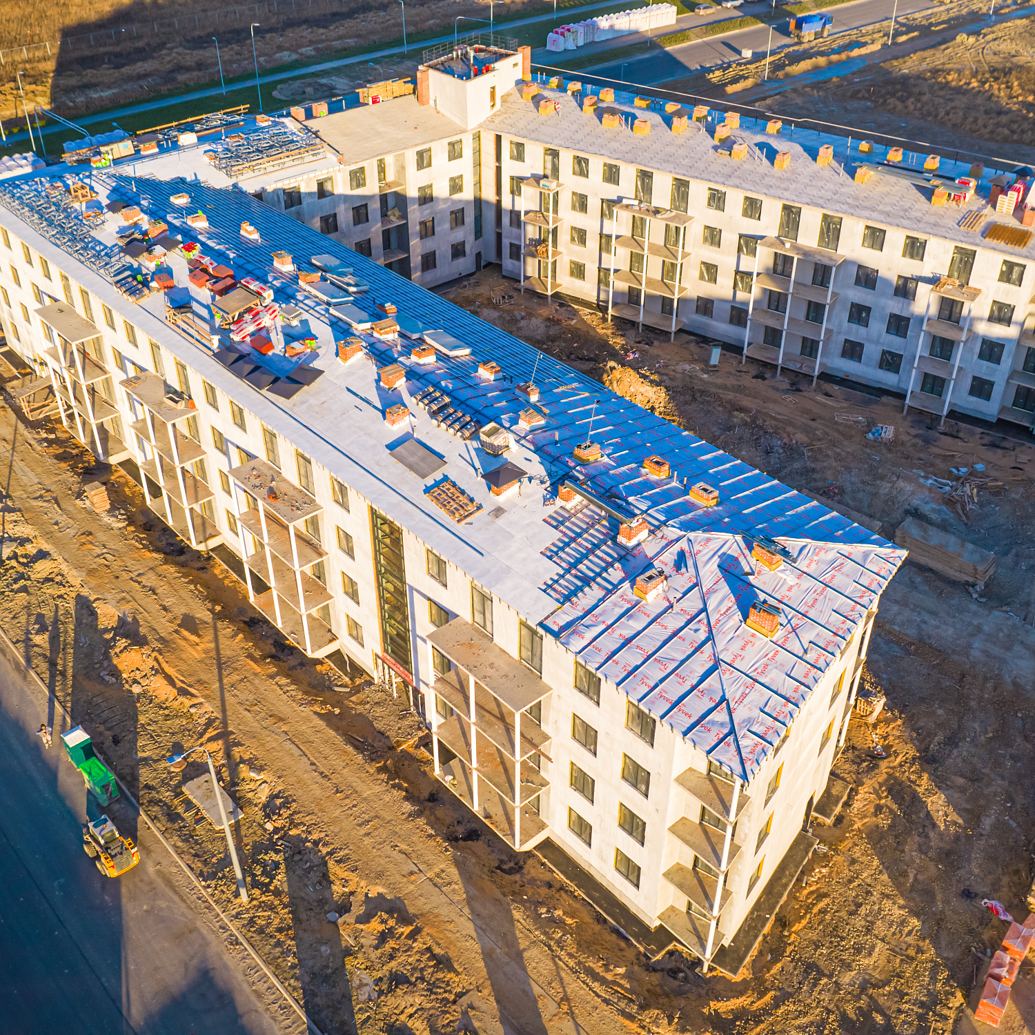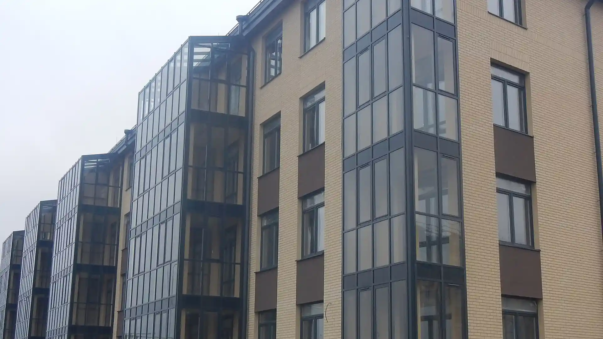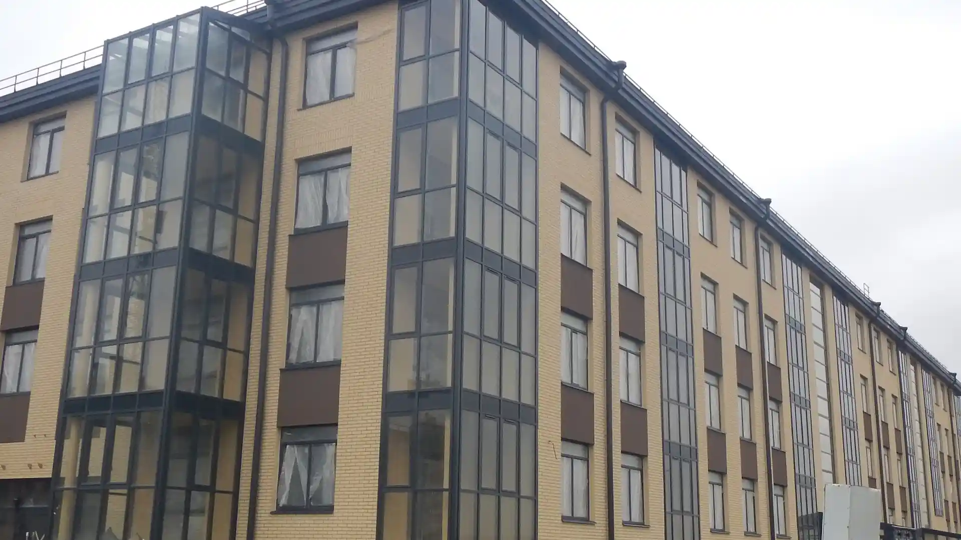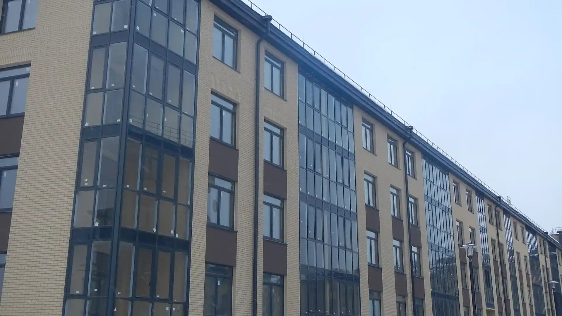 Комплекс включает три четырёхэтажных монолитно‑кирпичных дома, рассчитанных на 442 квартиры комфорт‑класса. Завершение строительства запланировано на III квартал 2026 года, а передача ключей — до 1 февраля 2027 года. Здания возводятся по монолитно‑кирпичной технологии: несущие стены выполнены из монолитного железобетона, наружные — из кирпича с утеплителем и штукатурным слоем. Фасады облицованы клинкерным кирпичом в тёмных тонах и дополнены витражным остеклением балконов и лоджий. Архитектурный облик выдержан в стиле современной европейской застройки — с минималистичным внешним видом и сдержанной отделкой парадных.