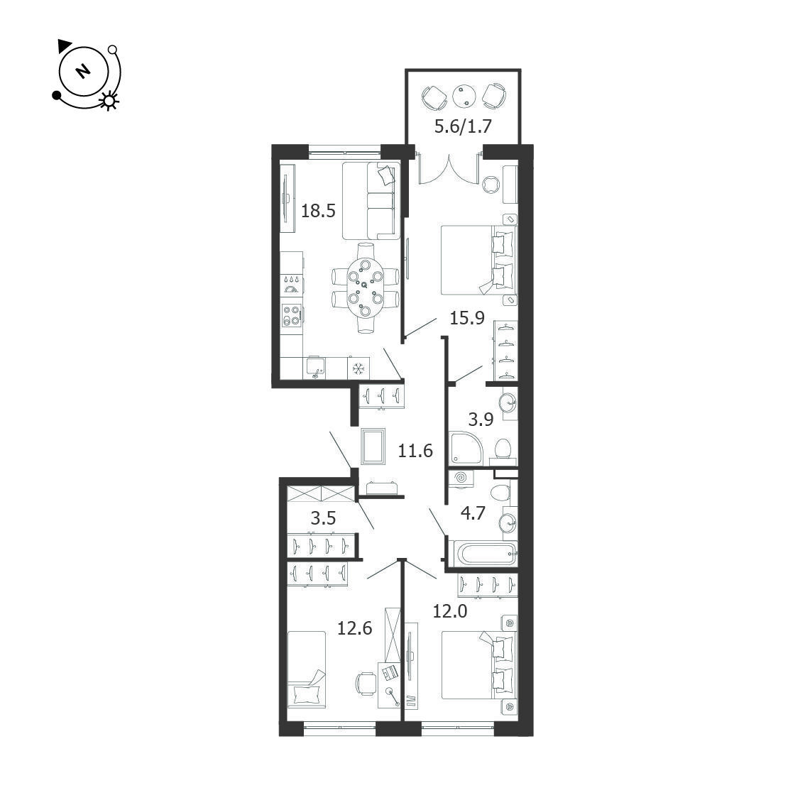 34.2 - 84.4 м²
