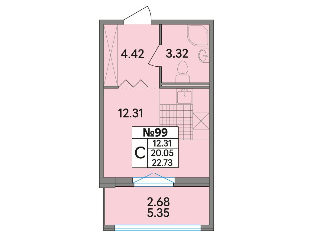 22.73 - 85.3 м²