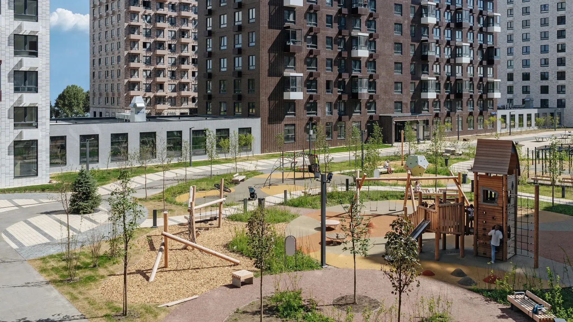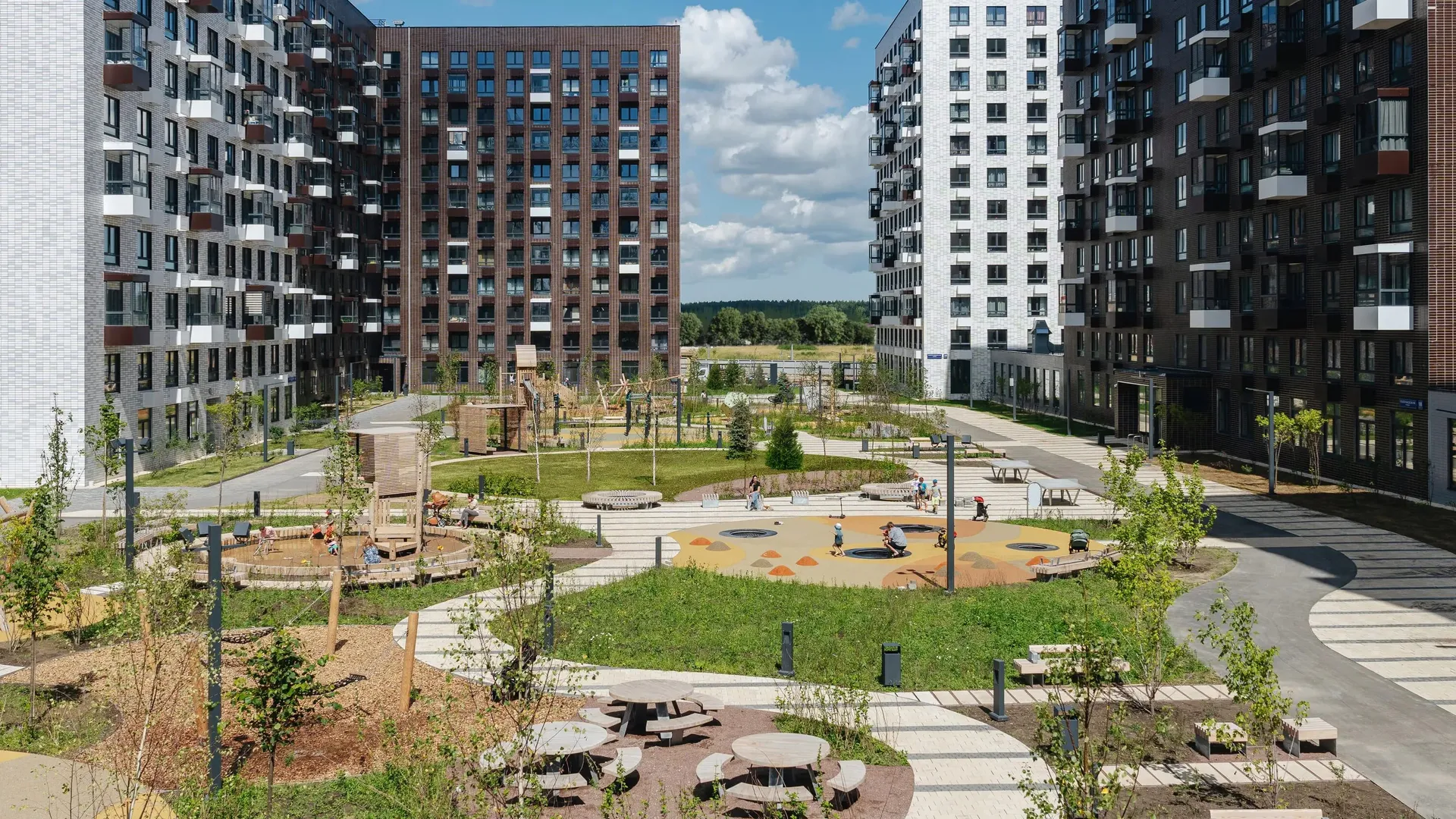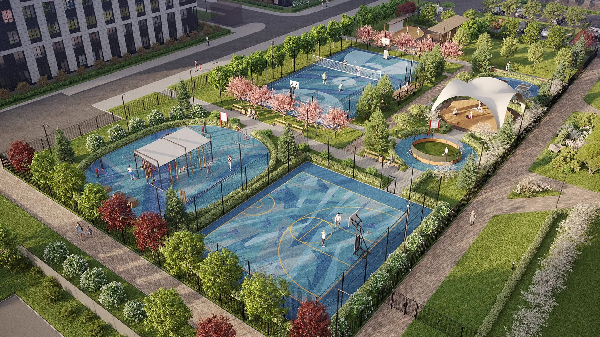 Особое место занимает «Активити парк» — зона отдыха исключительно для жителей комплекса. Здесь предусмотрены площадки для волейбола, баскетбола, уличного футбола, настольного тенниса, зона для тренировок, шатёр для йоги и кинотеатр под открытым небом.