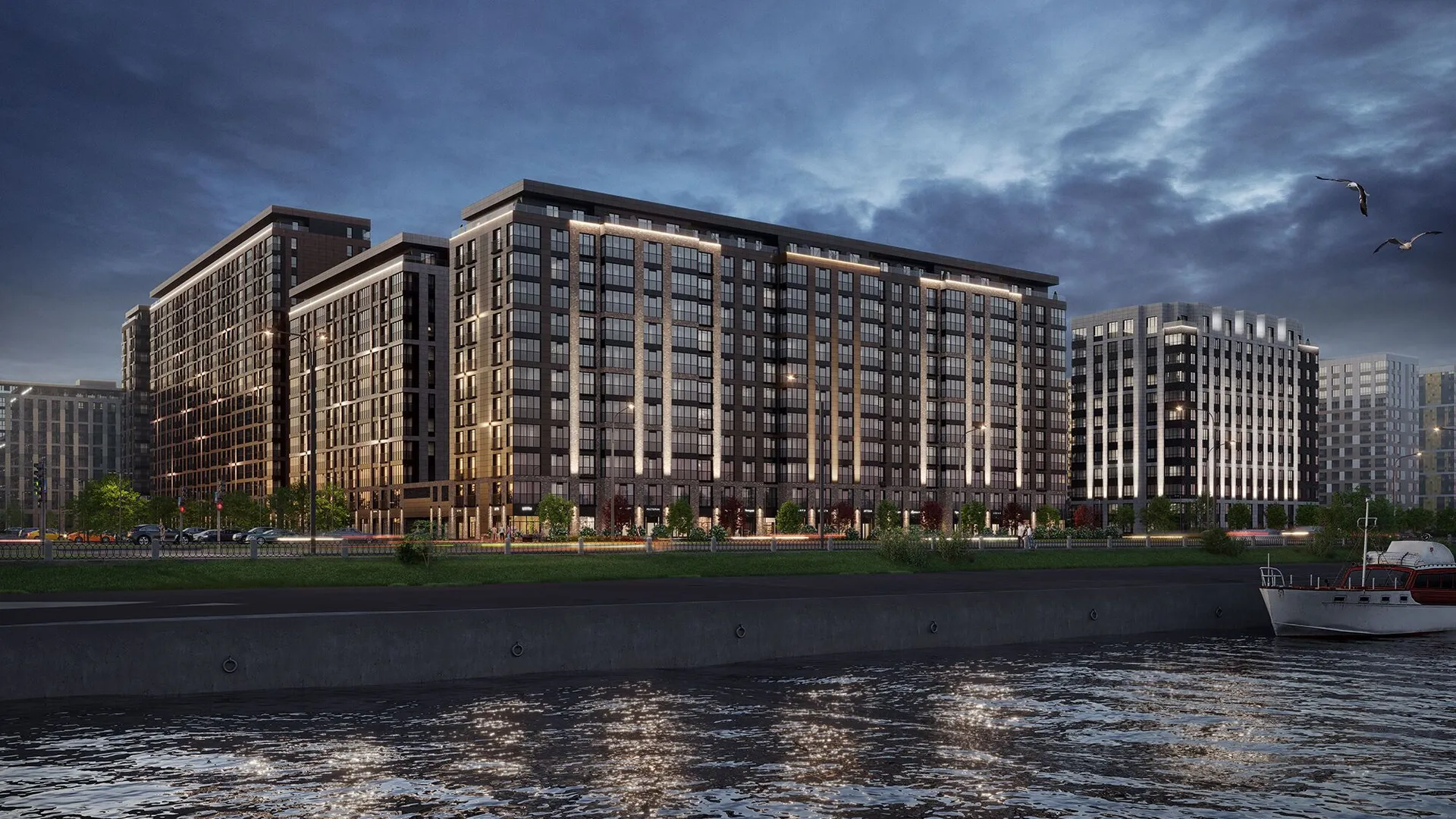 ЖК «Сэтл Ривьера» — проект повышенного комфорта от холдинга Сэтл Групп, расположенный на Октябрьской набережной в Санкт‑Петербурге, на первой береговой линии Невы. Благодаря такому расположению жители получают панорамный вид на реку, который органично вписан в экстерьер комплекса: водная гладь отражается в окнах квартир.