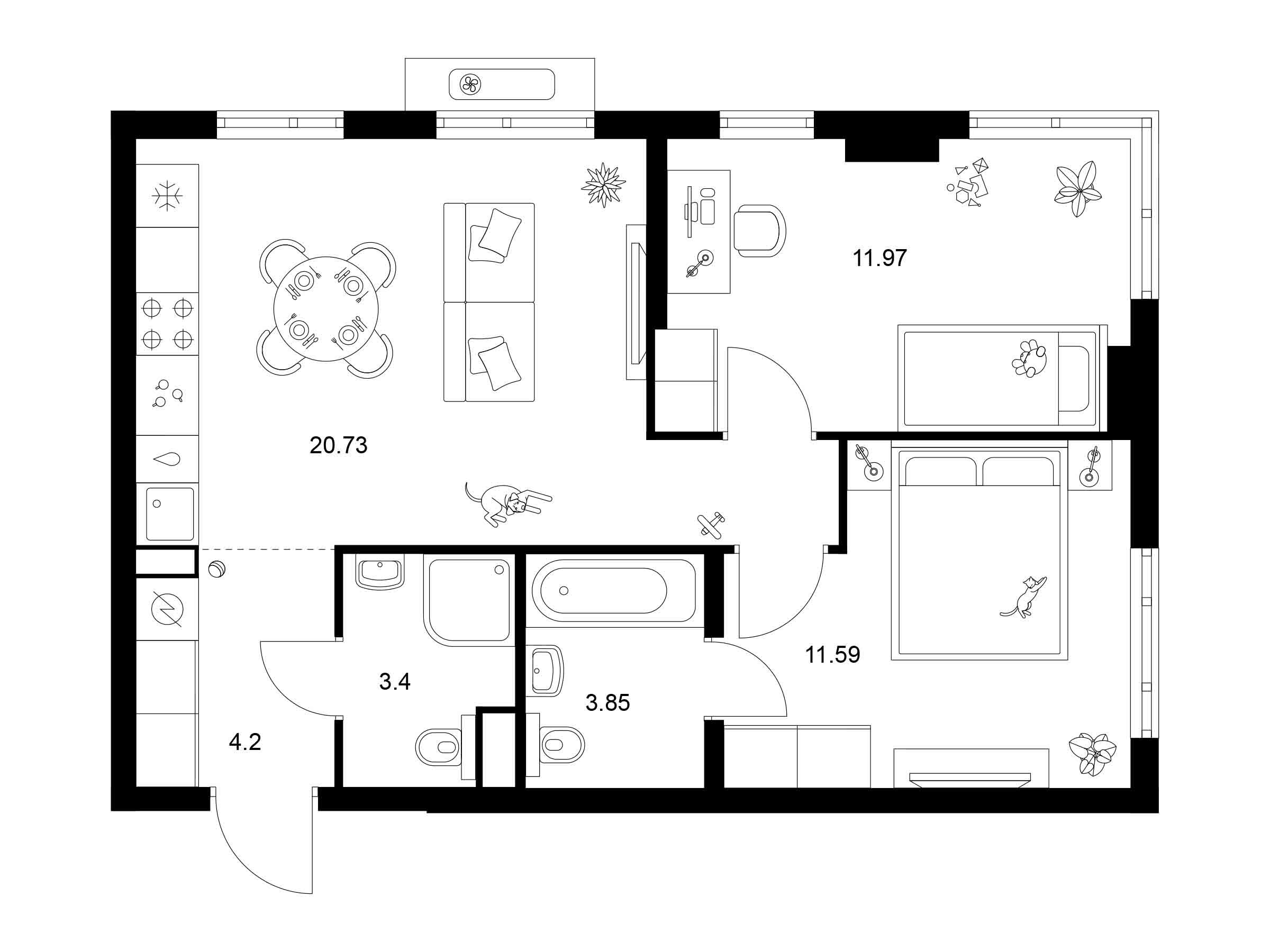 Район Новоселье активно развивается в городском формате: здесь уже работают детские сады, школа и магазины. Для любителей зимних видов спорта открыта круглосуточная ледовая арена. За покупками и развлечениями также можно быстро доехать: 10 минут — и вы в гипермаркетах Лента, Лемана ПРО и Окей.