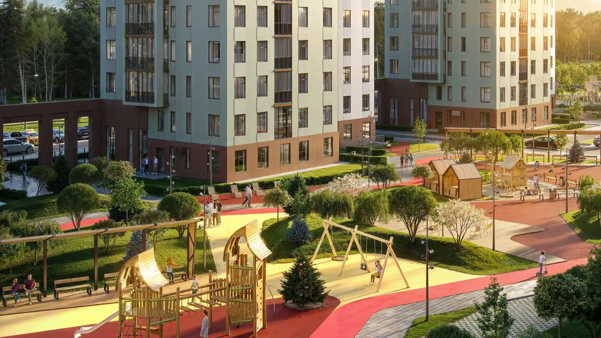 Инфраструктура микрорайона проектируется по принципу «15-минутного города». На территории комплекса предусмотрено возведение детского сада на 200 мест и школы на 1050 мест. Благоустройство включает создание центрального пешеходного променада, закрытые дворовые пространства без доступа автомобилей и современные игровые хабы для детей разных возрастов. Для хранения транспорта предусмотрены открытые стоянки по периметру квартала. Транспортное сообщение с Санкт-Петербургом обеспечивает близость развязки КАД (3 км) и Красносельского шоссе. На начало 2026 года стоимость недвижимости в проекте соответствует рыночным трендам локации Новоселье.