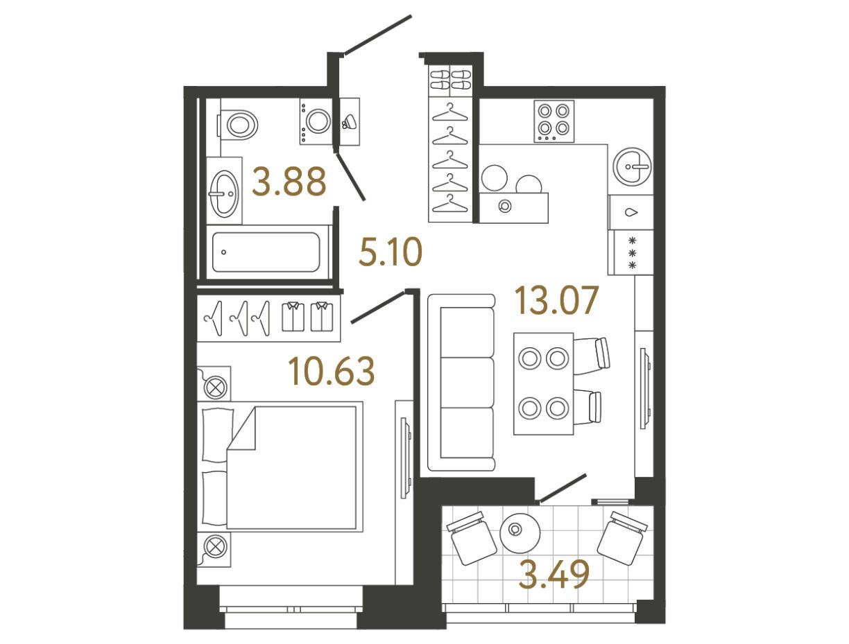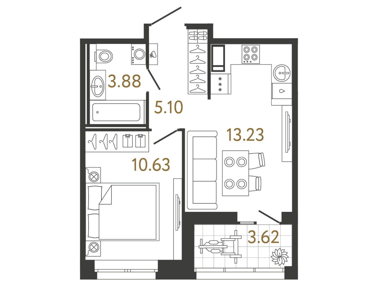 Проект включает четыре 17‑этажных монолитно‑кирпичных корпуса, объединённых общей территорией. Всего в нем предусмотрено 946 квартир площадью от 24 до 90 м². В ассортименте планировки от студий до четырехкомнатных, в том числе евроформаты с кухней‑гостиной, мастер‑спальней с гардеробной и двумя санузлами. Высота потолков составляет 2,75 м. Все квартиры передаются с предчистовой отделкой: стены выровнены и подготовлены под окраску, выполнена «плавающая» стяжка пола, установлены розетки, выключатели, квартирный щиток, домофонная панель и металлическая входная дверь с высокой взломостойкостью.