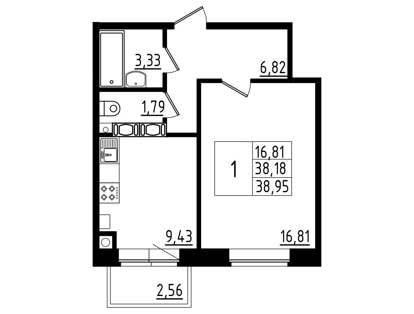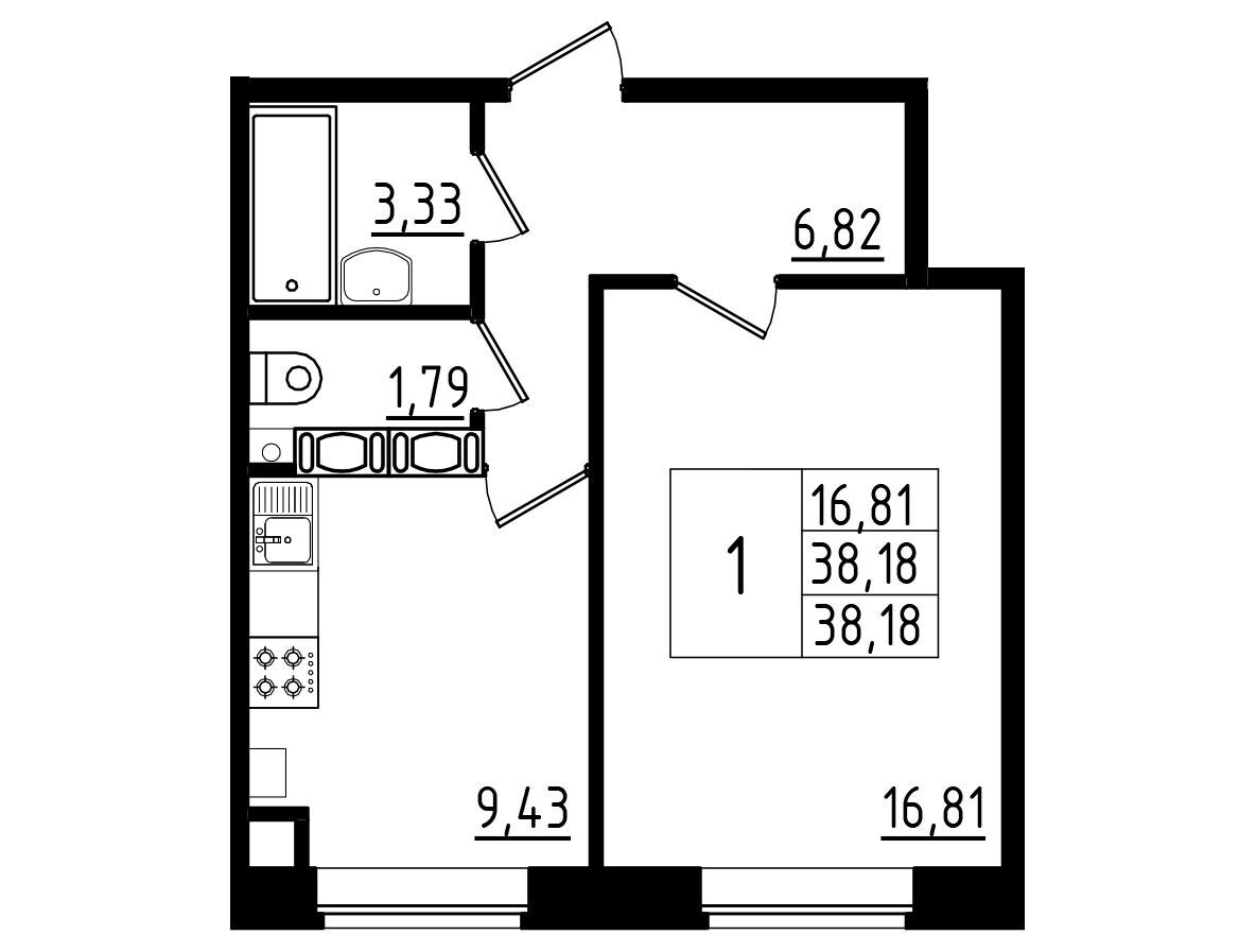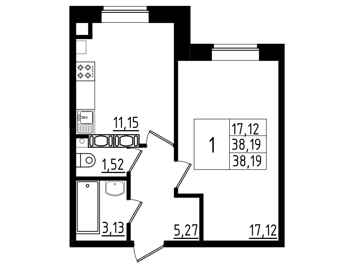 38.18 - 57.25 м²