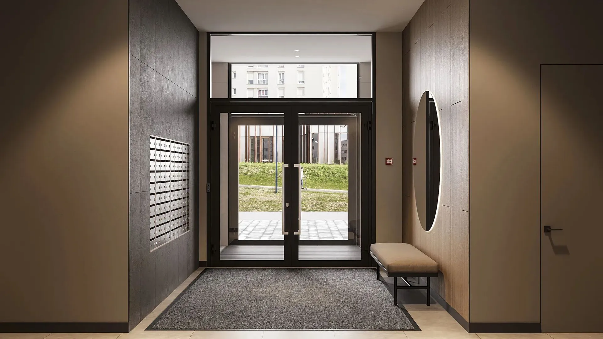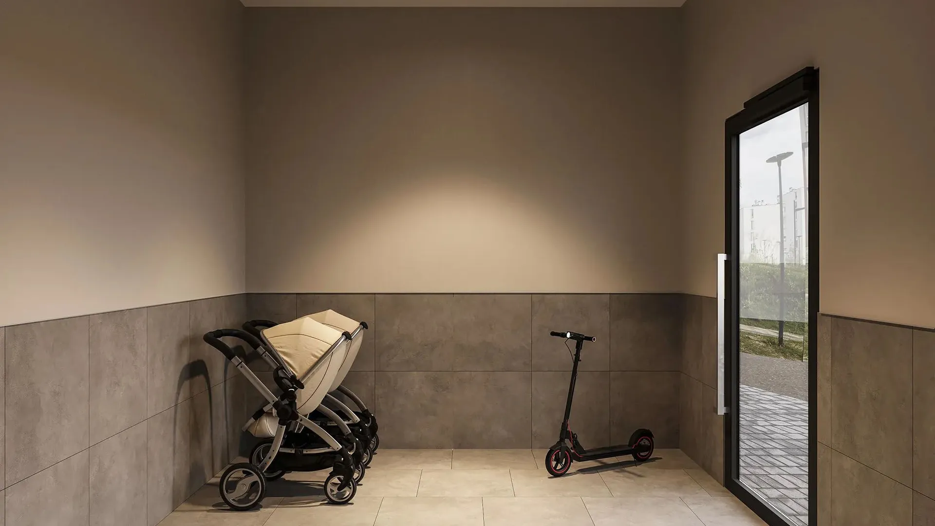 В подъездах созданы комфортные зоны ожидания с почтовыми ящиками и банкетками, а также пространства для велосипедов, самокатов и колясок. Входы в дома расположены на уровне земли, часть подъездов — сквозные. Внутри тёплых тамбуров организованы зоны ожидания и места для хранения уличного транспорта и колясок.