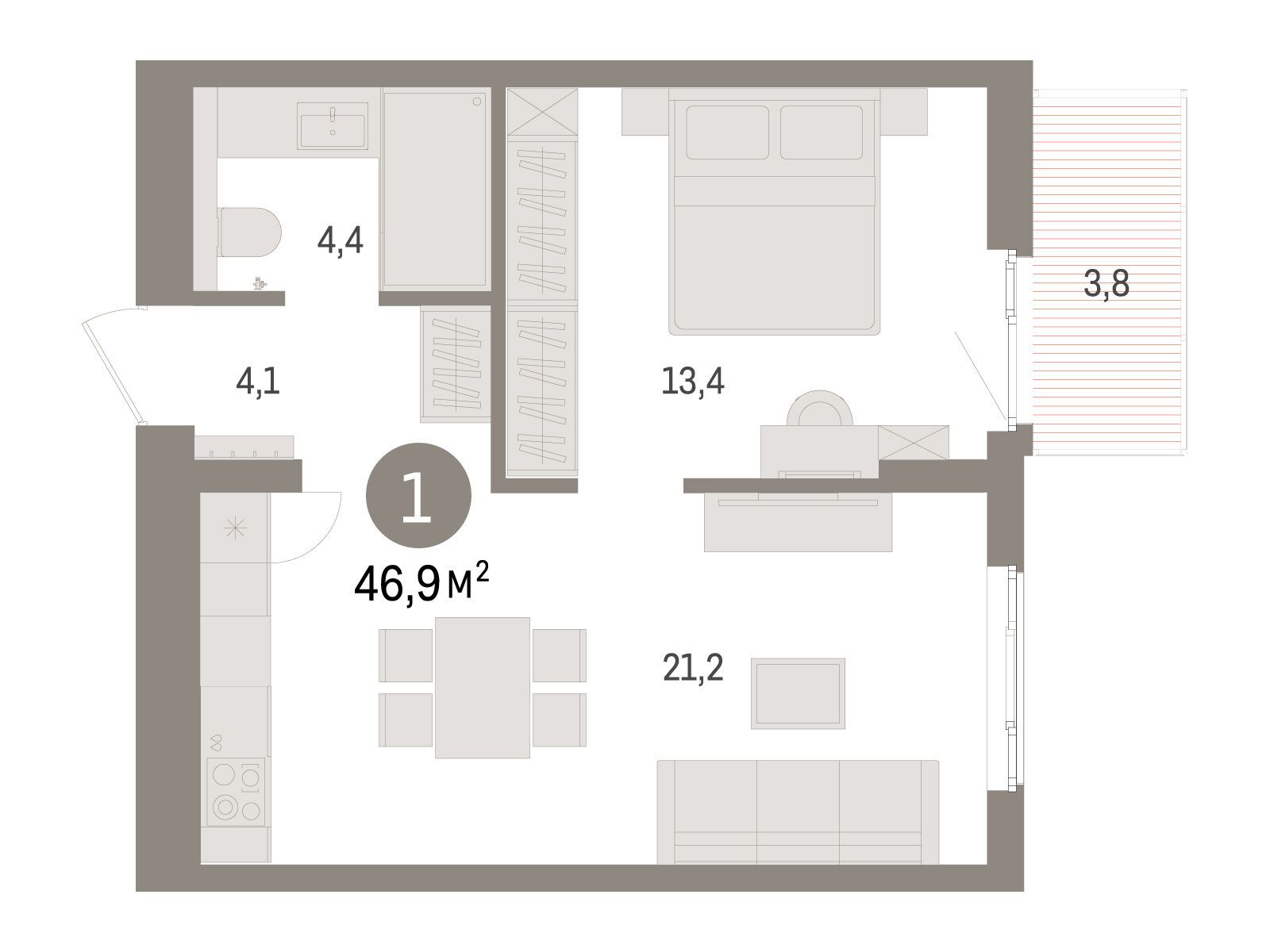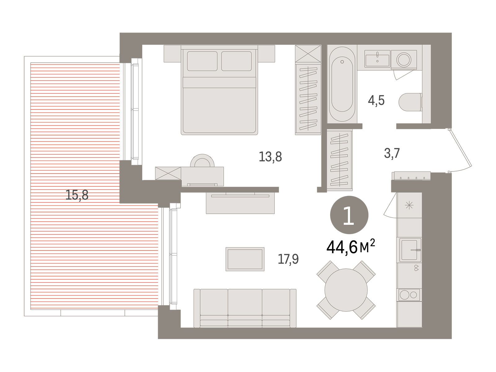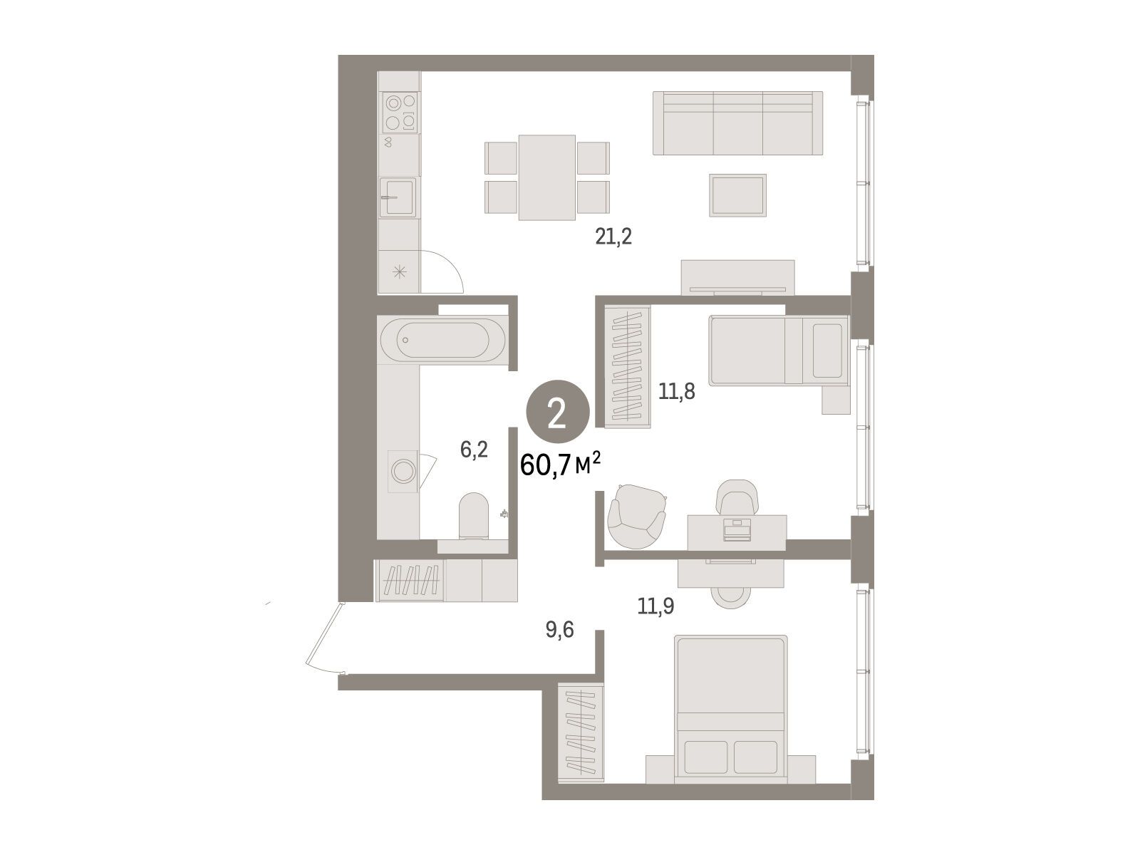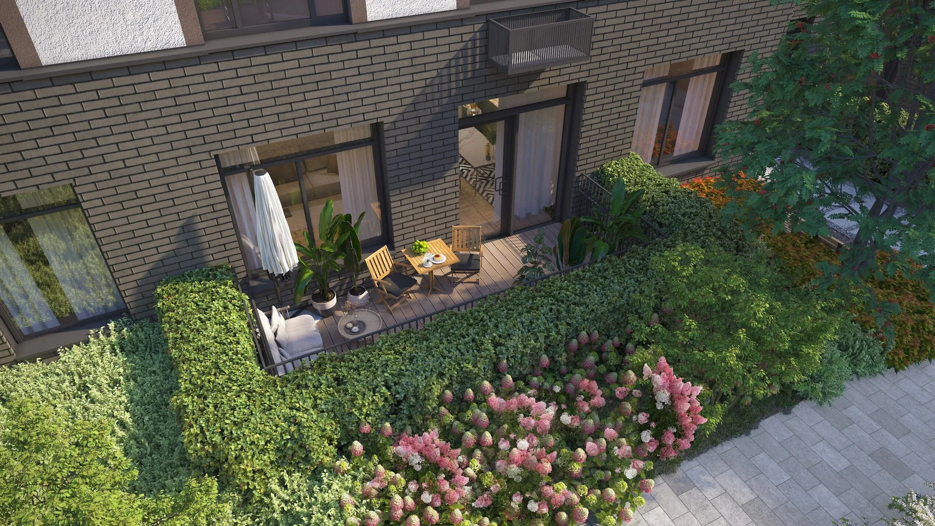 В комплексе представлены квартиры разных форматов — от студий до трёхкомнатных, площадью от 27 до 90 м². Высота потолков составляет 2,7–2,83 м, а в квартирах с террасами на верхних этажах — до 3 м. Планировки продуманы с функциональным зонированием: спальные помещения отделены от зон дневного пребывания (прихожая, кухня‑столовая, гостиная). В ряде квартир предусмотрены тёплые лоджии с буферной перегородкой, приватные террасы, высокие потолки (до 5–6 м), а в мастер‑спальнях — отдельные ванные и гардеробные. Все квартиры сдаются с предчистовой отделкой, включающей стяжку пола с шумо‑ и гидроизоляцией, подключение коммуникаций и возведение внутренних стен.