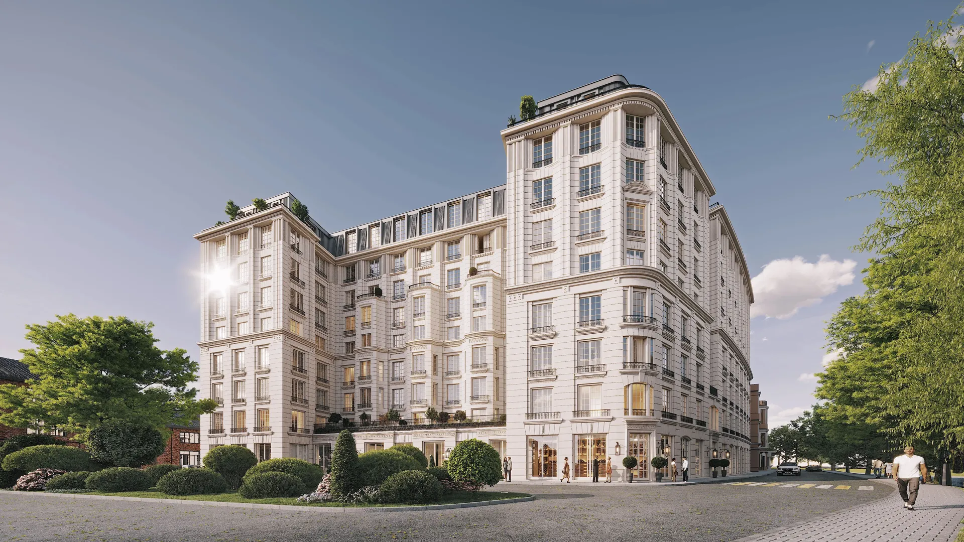 Территория комплекса закрыта для посторонних, доступ осуществляется только через лобби с консьержем. Безопасность обеспечивается системой видеонаблюдения и электронными домофонами.