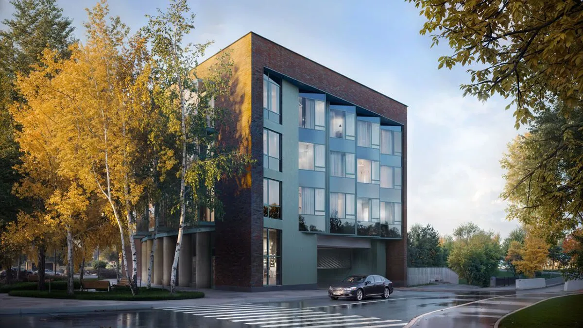 Фасад здания облицован кирпичом терракотового оттенка, гармонично вписывающимся в классическую застройку Зеленогорска. Акцентные вставки лазурного цвета символизируют волны Финского залива. Архитектурный проект разработан бюро «Проектная культура», а ландшафтный дизайн двора создан специалистами AFA Group по мотивам приусадебных садов XIX века.