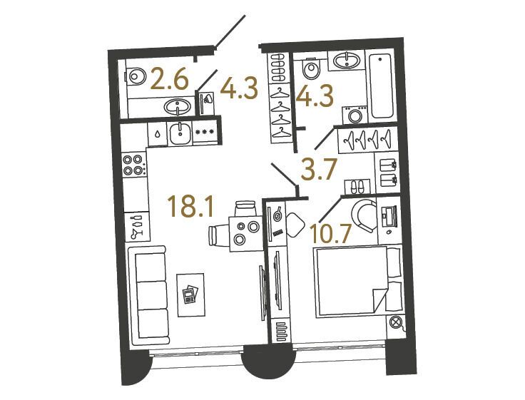 В комплексе представлены студии, одно-, двух‑ и трёхкомнатные квартиры площадью от 24 до 111 м . Высота потолков варьируется от 2,99 м на типовых этажах до 3,14 м на четвёртом этаже. Все квартиры сдаются с отделкой White Box, включающей выравнивание полов, штукатурку и шпаклёвку стен, монтаж электропроводки и водопроводных систем, приточно‑вытяжную вентиляцию и установку входных металлических дверей с шумоизоляцией.