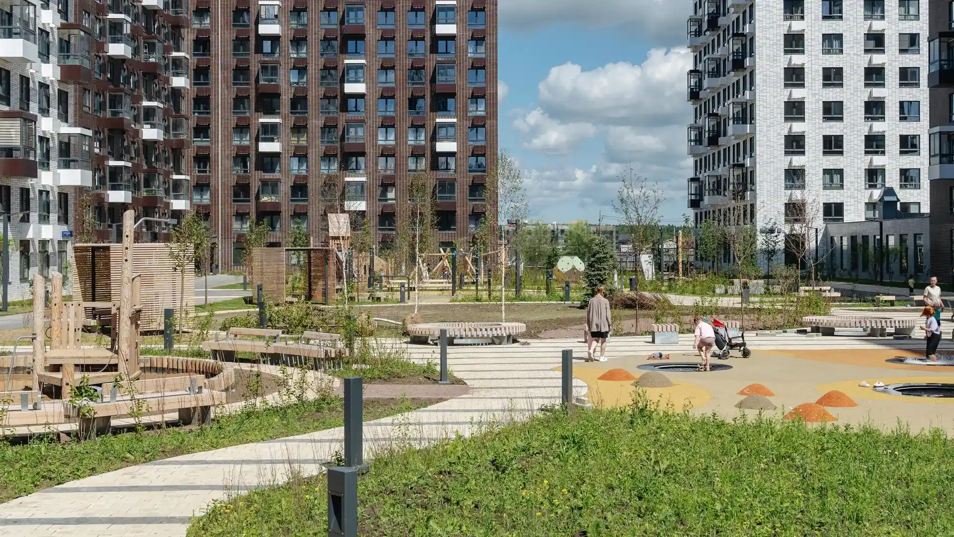 Инфраструктура комплекса включает супермаркеты, кафе, пункты выдачи заказов и детский сад на 240 мест. В шаговой доступности находятся спортивные студии, салоны красоты, аптеки, банки, государственные и частные клиники. Для досуга оборудованы спортивные площадки, зоны для барбекю, детские игровые комплексы, велосипедные дорожки и парковки для велосипедов.