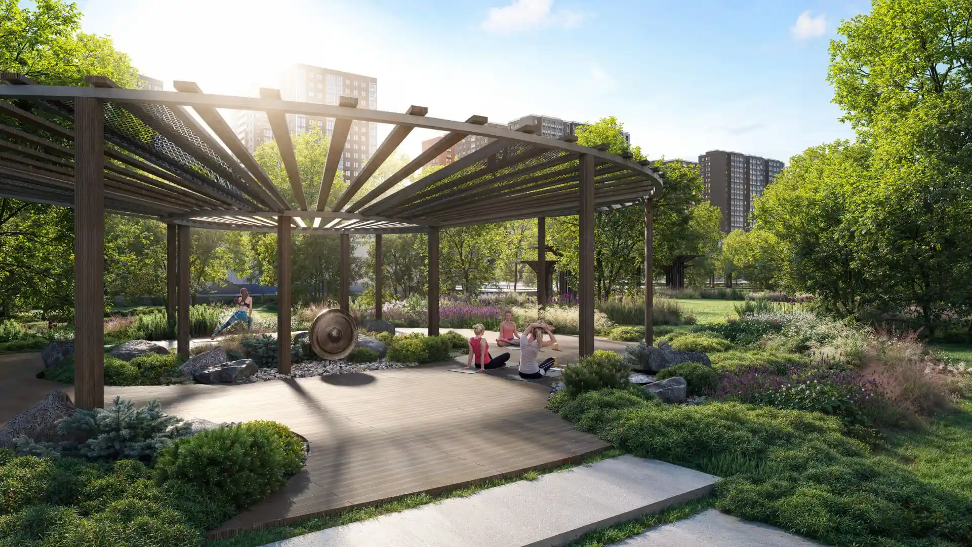 Для активного отдыха обустроят спортивные площадки и велодорожки, крытую зону для йоги, а также пять площадок для выгула и дрессировки домашних животных. Детские игровые зоны оснастят концептуальными комплексами и качелями со световыми элементами. Коммерческая инфраструктура будет представлена помещениями формата «стрит‑ритейл» площадью от 31 до 972 м², где разместятся магазины, кафе, рестораны, салоны красоты, фитнес‑центры и аптеки. Кроме того, планируется организация ярмарки с товарами от местных производителей и ремесленников.